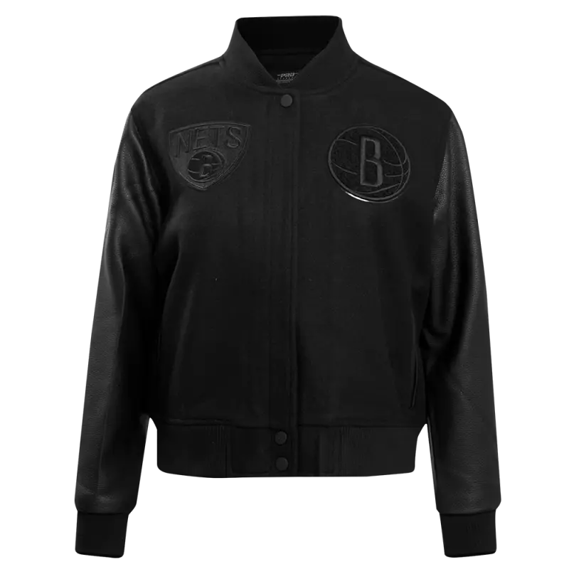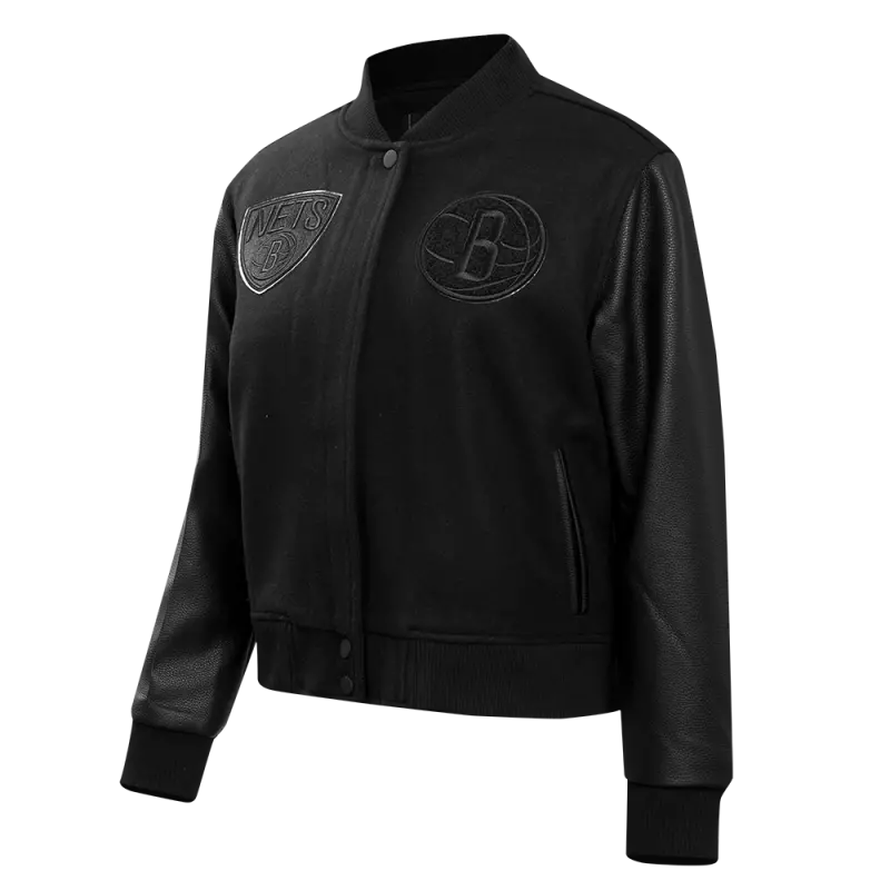 NBA BROOKLYN NETS TRIPLE BLACK WOOL WOMEN’S VARSITY JACKET (TRIPLE BLACK)