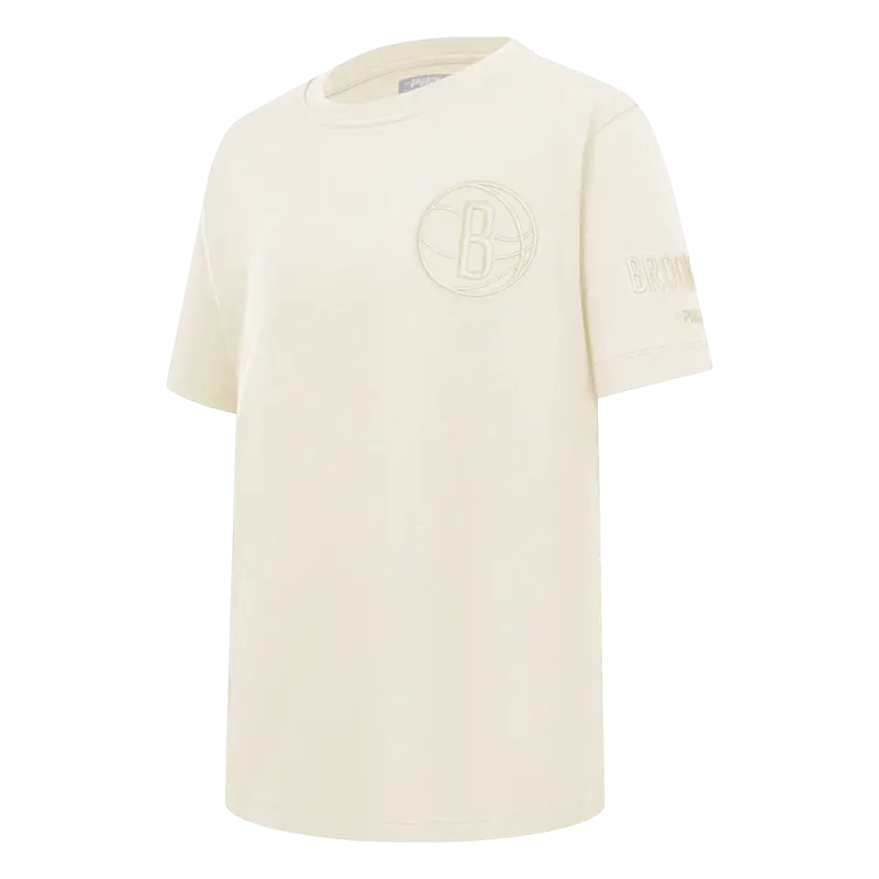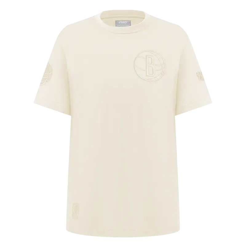 NBA BROOKLYN NETS NEUTRAL BIG GIRLS SHORT SLEEVE BOXY TEE (EGGSHELL)