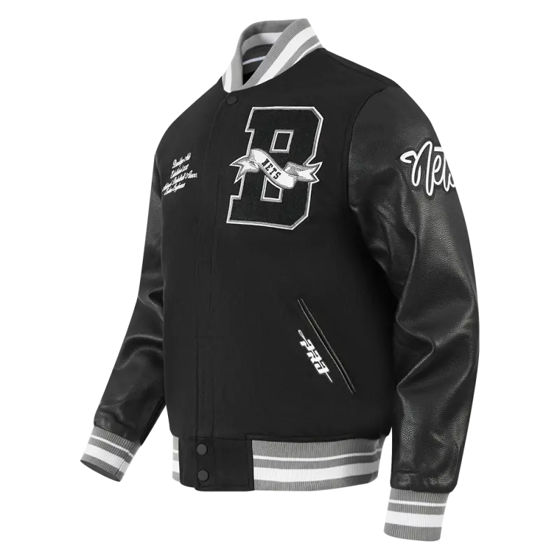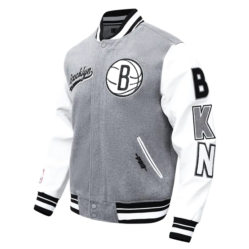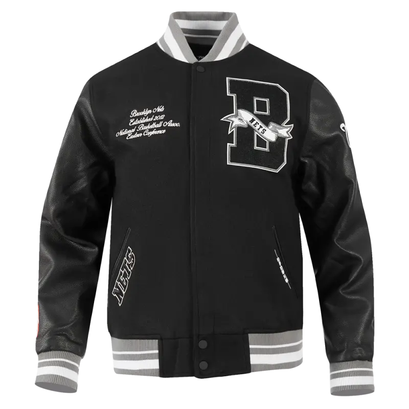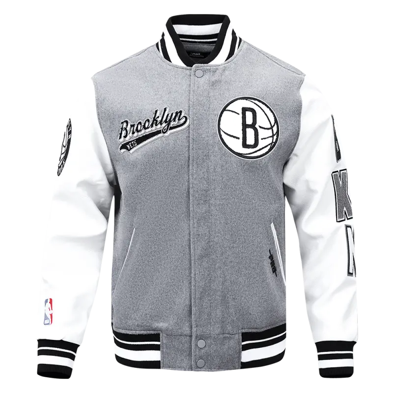 NBA BROOKLYN NETS TEAM PENNANTS MEN’S RIB WOOL VARSITY JACKET (BLACK\/GRAY)