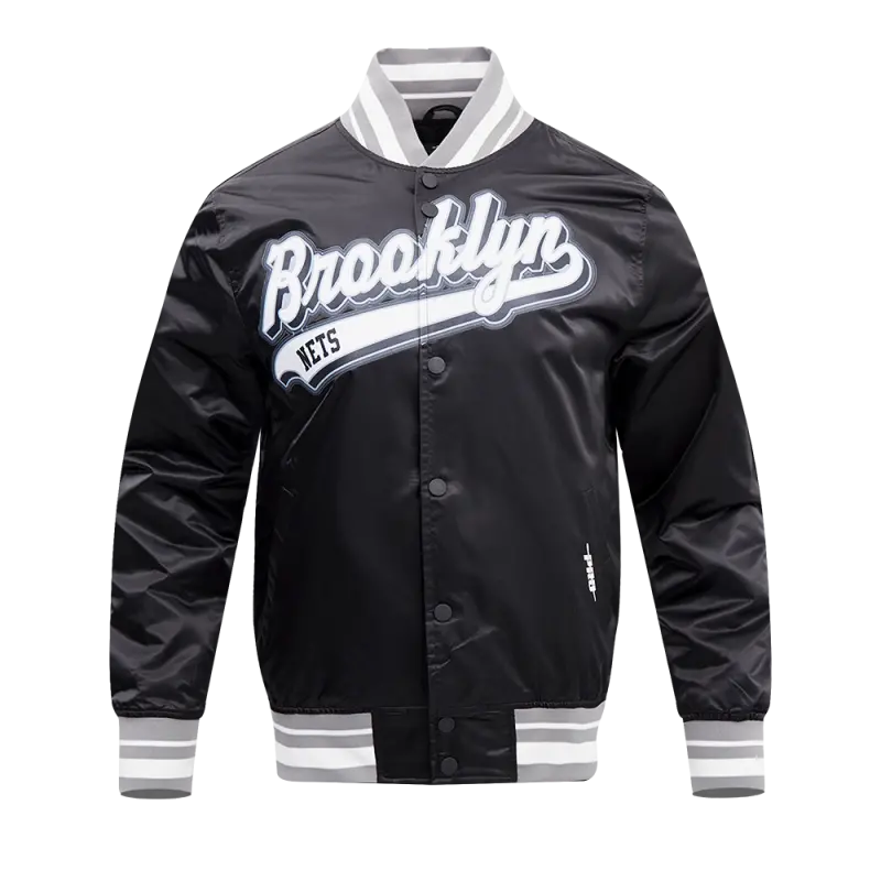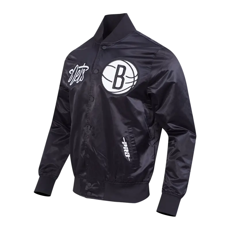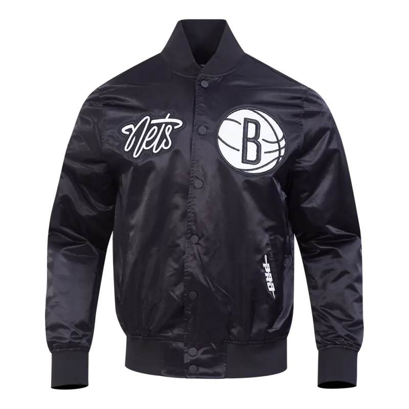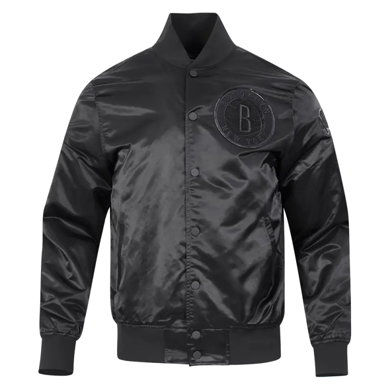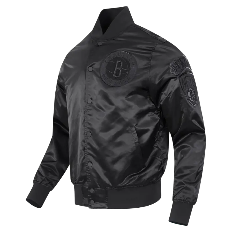 NBA BROOKLYN NETS TRIPLE BLACK MEN’S SATIN JACKET (BLACK)