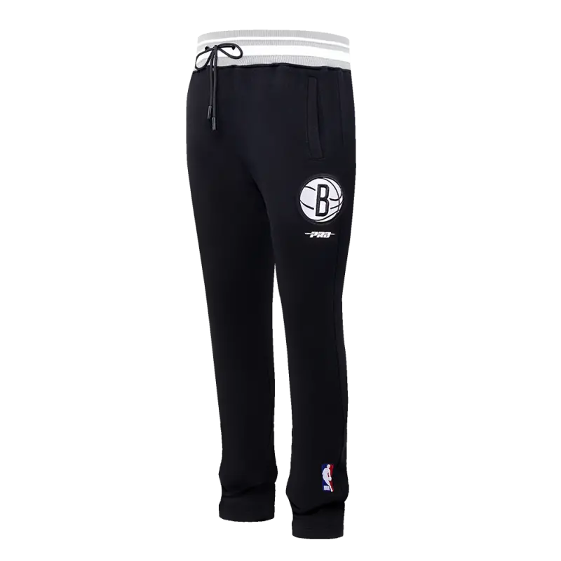 NBA BROOKLYN NETS SCRIPT TAIL MEN’S RIB FLEECE SWEATPANT (BLACK\/GRAY)