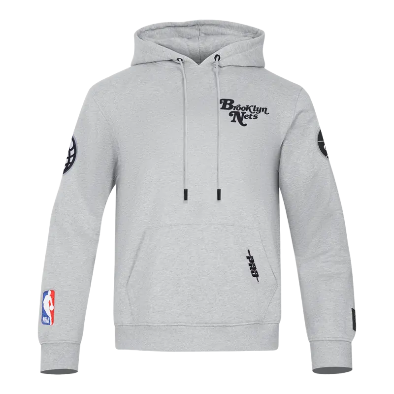 NBA BROOKLYN NETS SOUVENIR MEN’S FLEECE PULLOVER HOODIE (HEATHER GREY)
