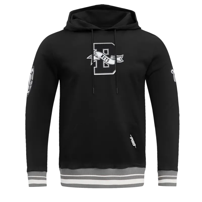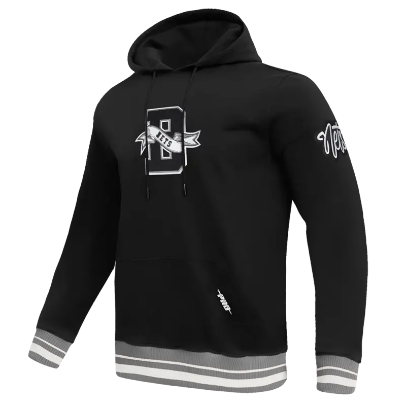 NBA BROOKLYN NETS TEAM PENNANTS MEN’S RIB FLEECE PULLOVER HOODIE (BLACK\/GRAY)