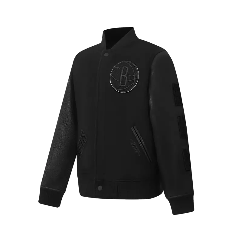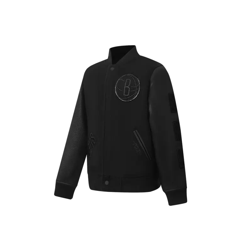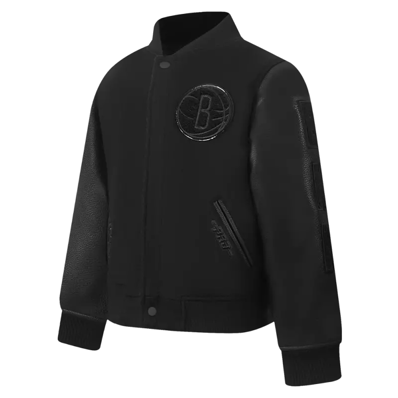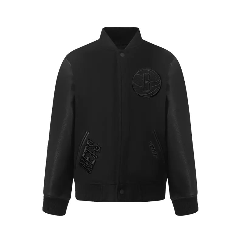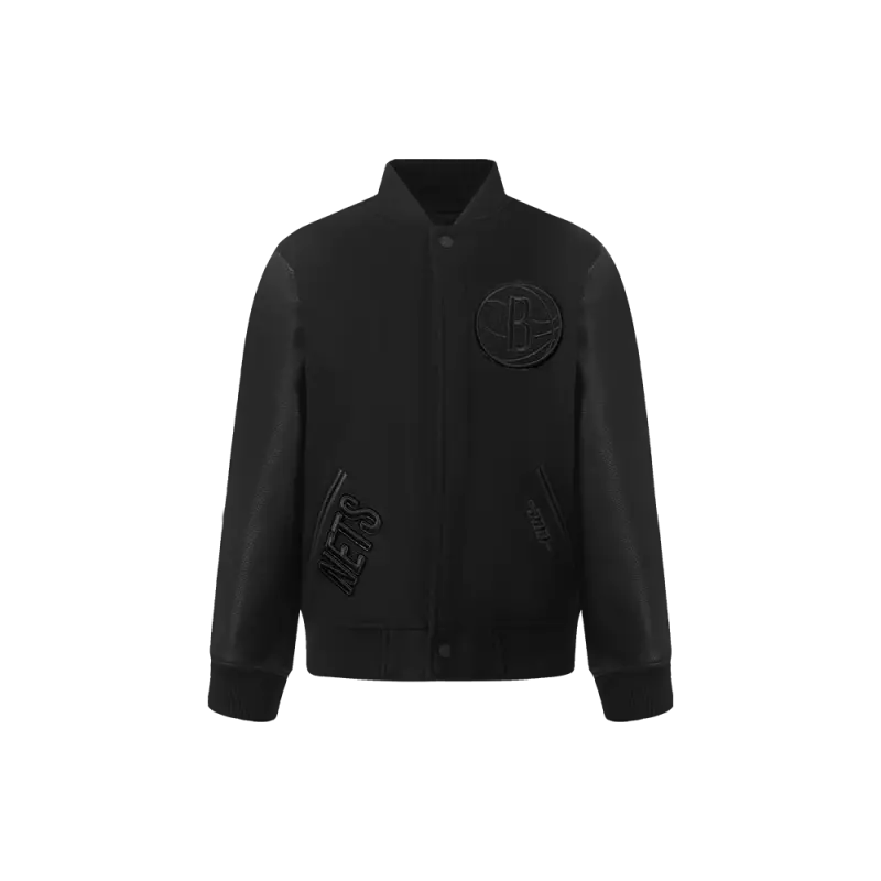 NBA BROOKLYN NETS TRIPLE BLACK BIG BOYS WOOL VARSITY JACKET (JET BLACK)
