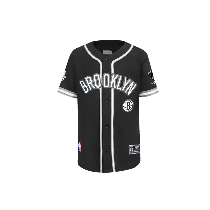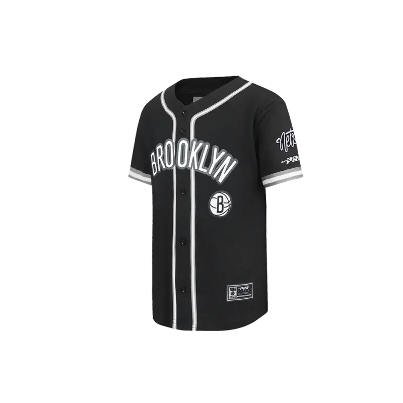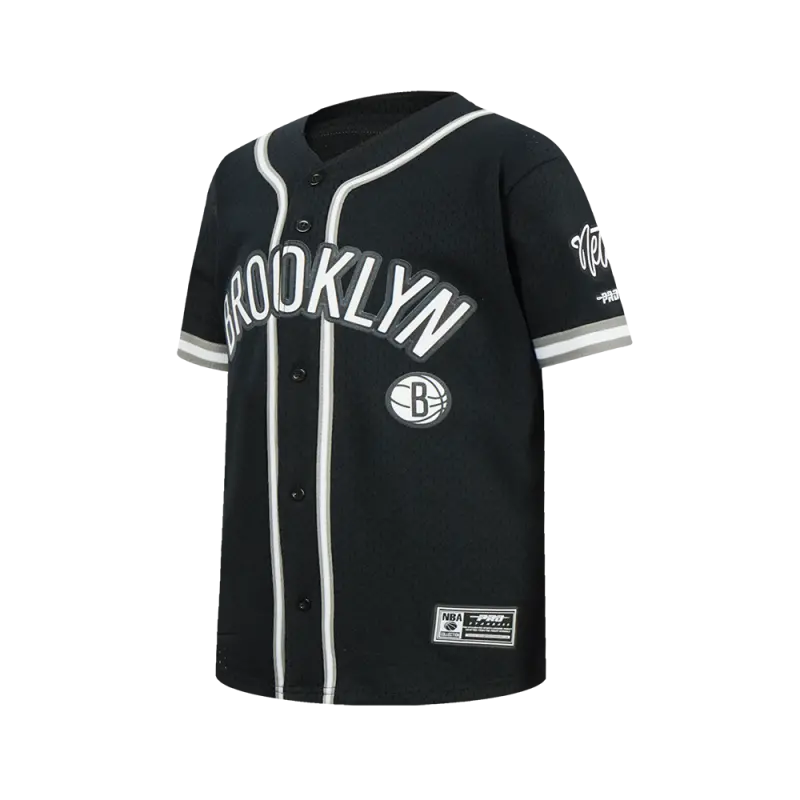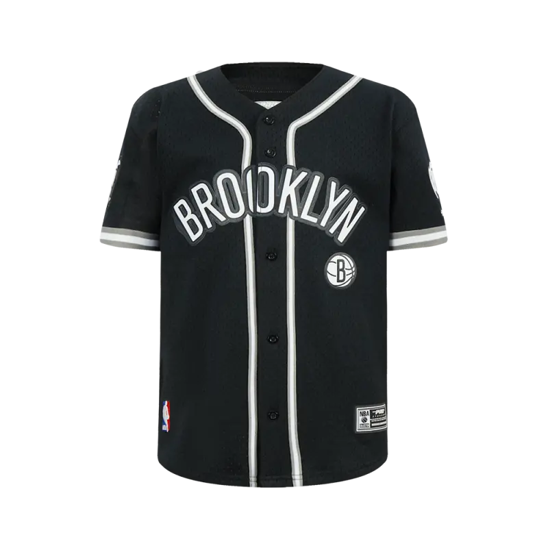 NBA BROOKLYN NETS CLASSIC BIG BOYS MESH BUTTON DOWN SHIRT (BLACK\/GRAY)