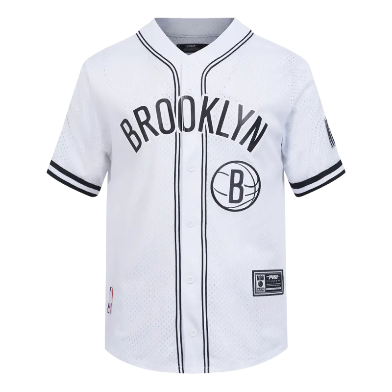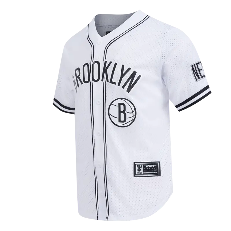 NBA BROOKLYN NETS CLASSIC MEN’S MESH BUTTON DOWN SHIRT (WHITE\/BLACK\/WHITE)