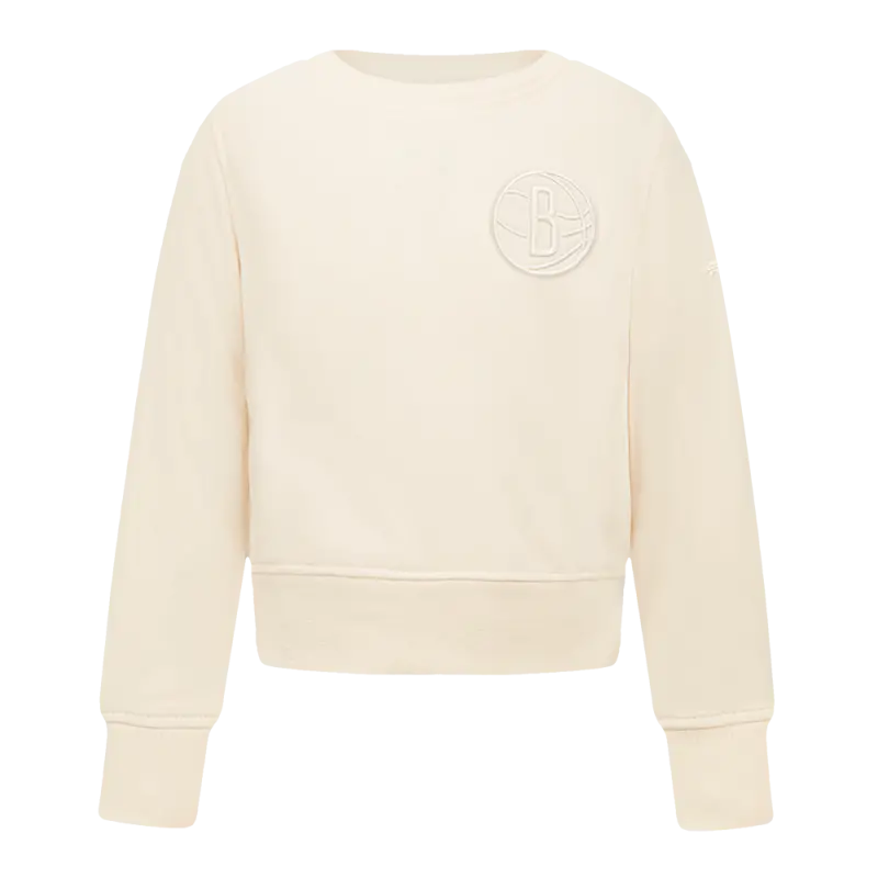 NBA BROOKLYN NETS NEUTRAL TODDLER GIRLS FLEECE CREWNECK (EGGSHELL)