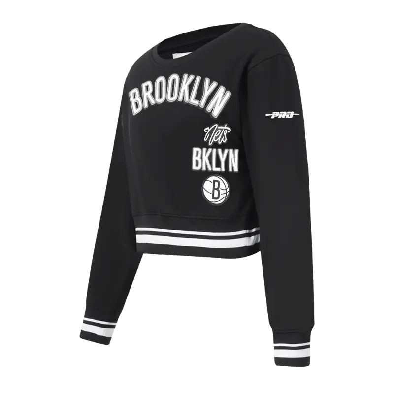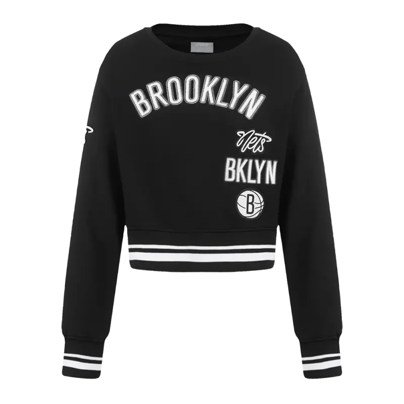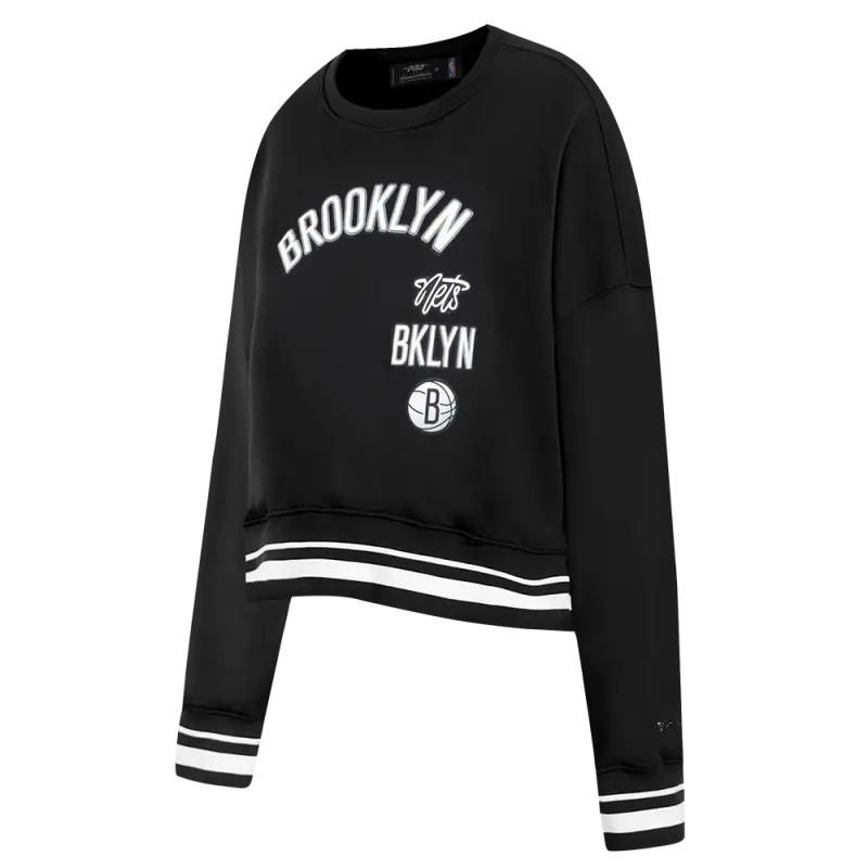 NBA BROOKLYN NETS RETRO CLASSICS WOMEN’S FLC CREWNECK (BLACK)