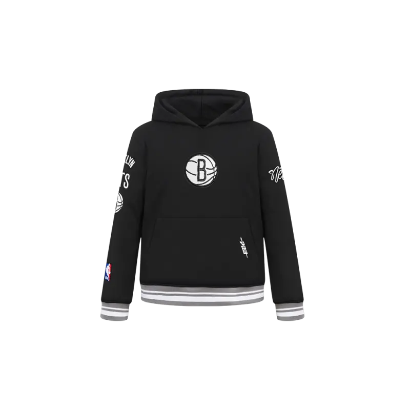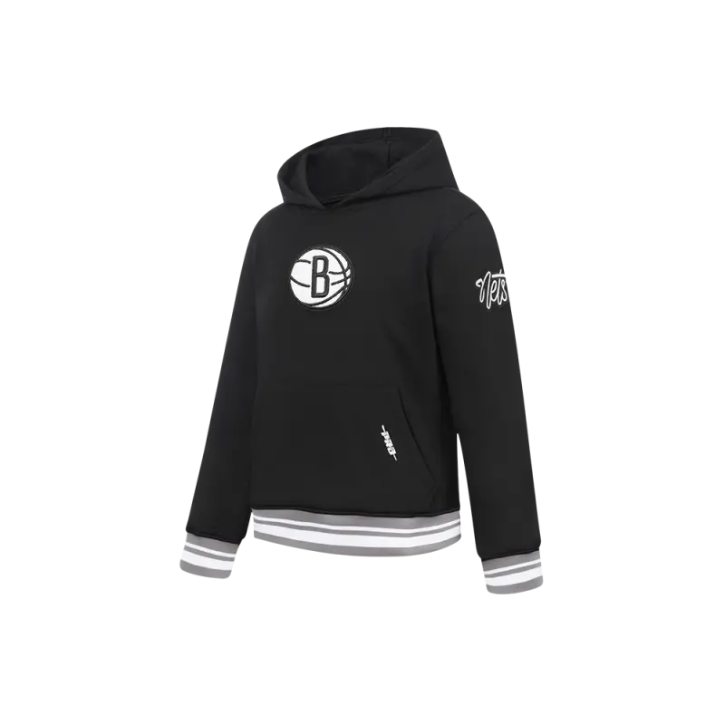 NBA BROOKLYN NETS RETRO CLASSIC BIG GIRLS RIB FLEECE PULLOVER HOODIE (BLACK)