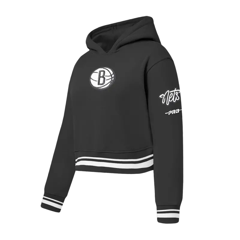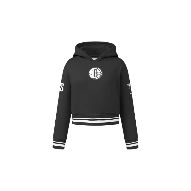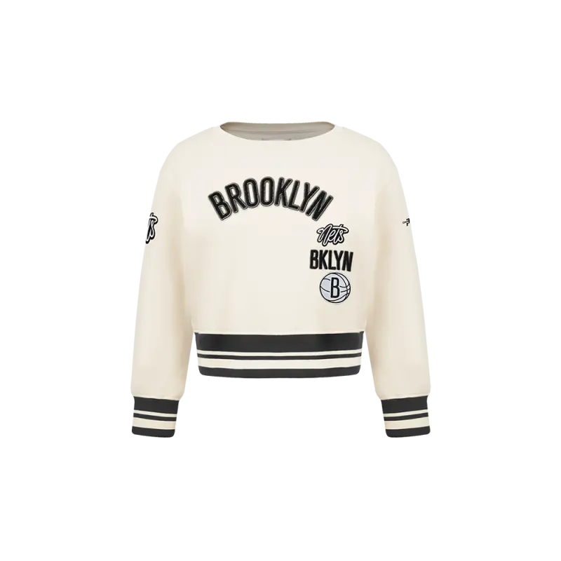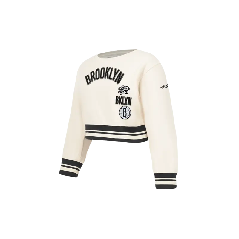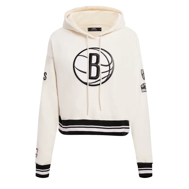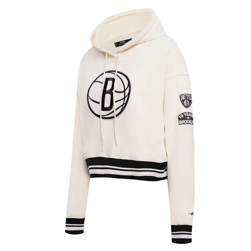 NBA BROOKLYN NETS RETRO CLASSIC WOMEN’S CROPPED PULLOVER HOODIE (EGGSHELL\/ BLACK)