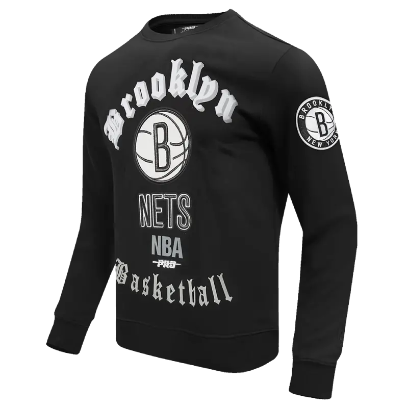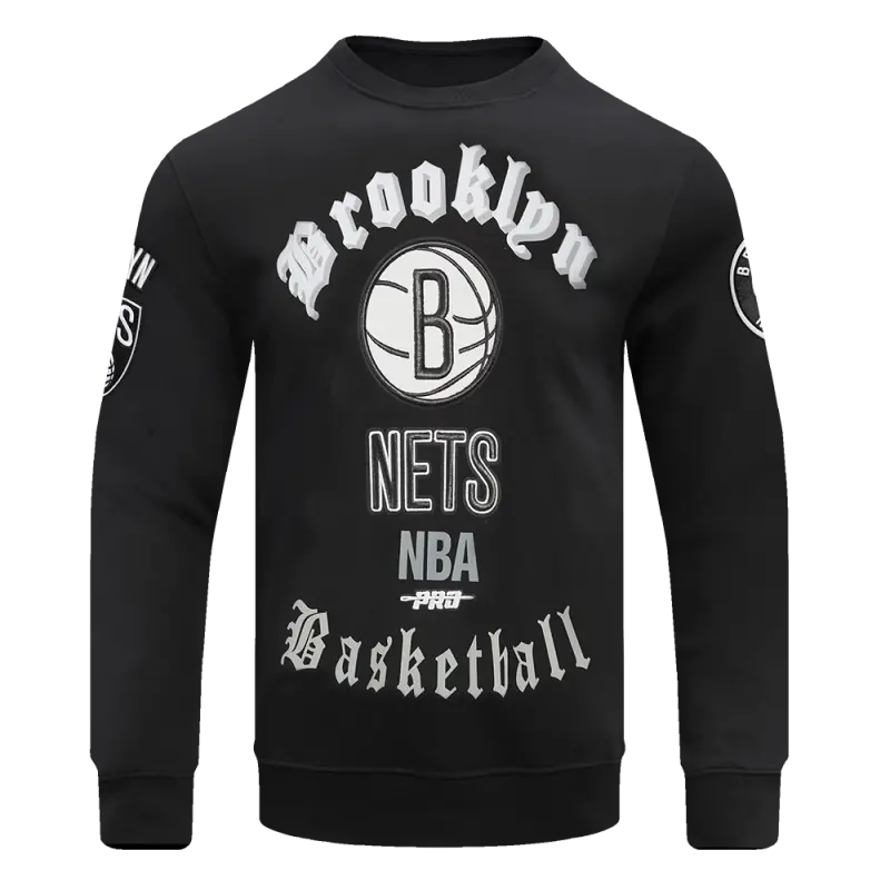 NBA BROOKLYN NETS OLD ENGLISH MEN’S CREWNECK (BLACK)