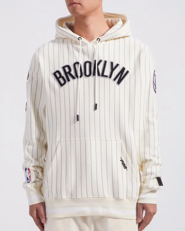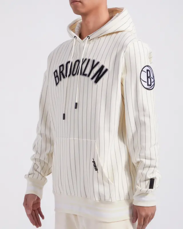 NBA BROOKLYN NETS PINSTRIPE RETRO CLASSIC RIB FLC PO HOODIE (EGGSHELL\/ GREY)