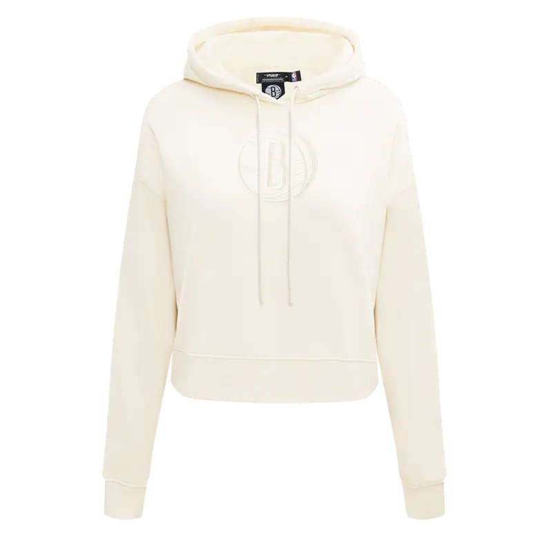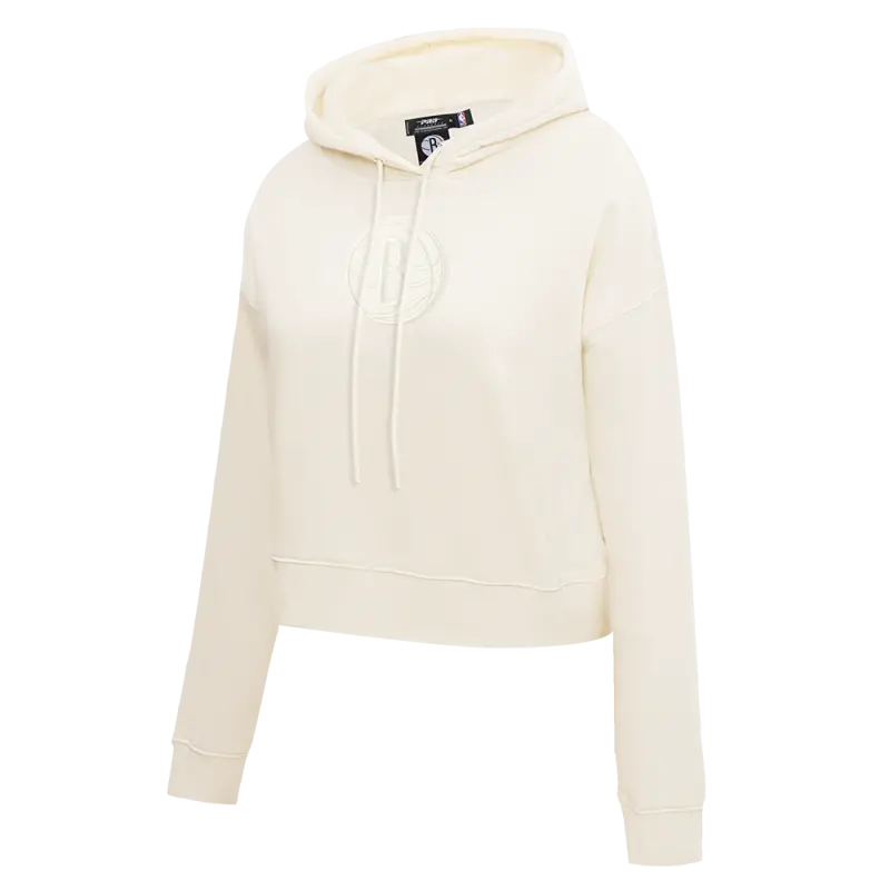 NBA BROOKLYN NETS NEUTRAL WOMEN’S FLC CROPPED PO HOODIE (EGGSHELL)