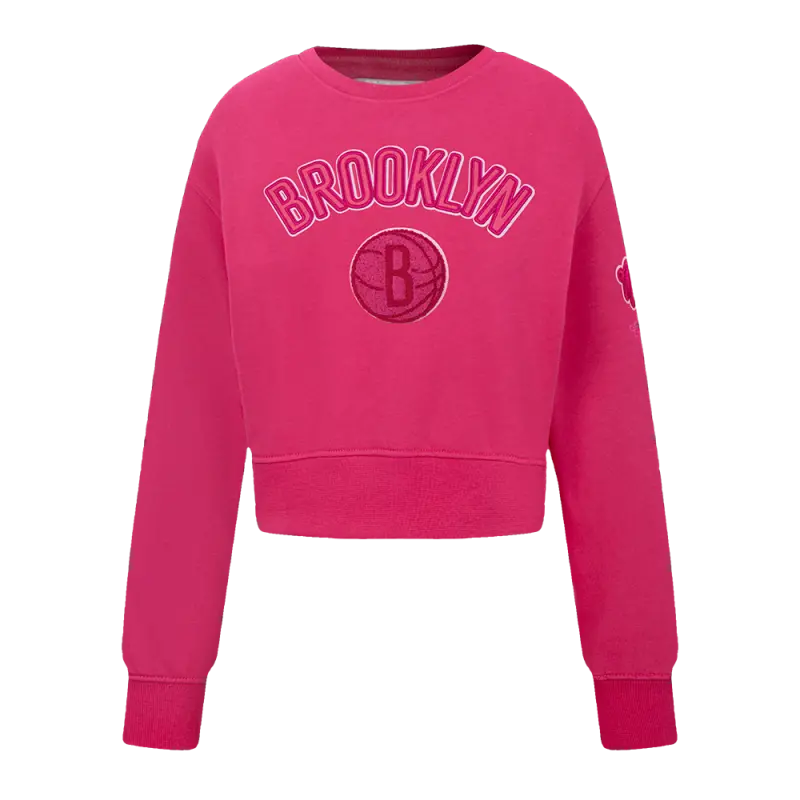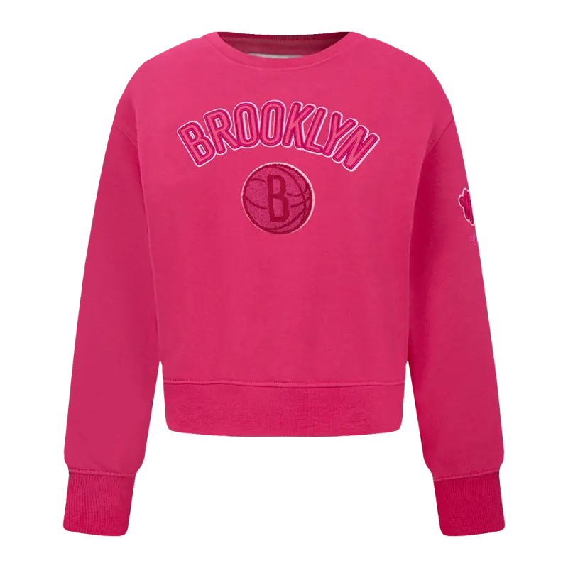 NBA BROOKLYN NETS TRIPLE PINK BIG GIRLS FLEECE CREWNECK (BEETROOT PURPLE)