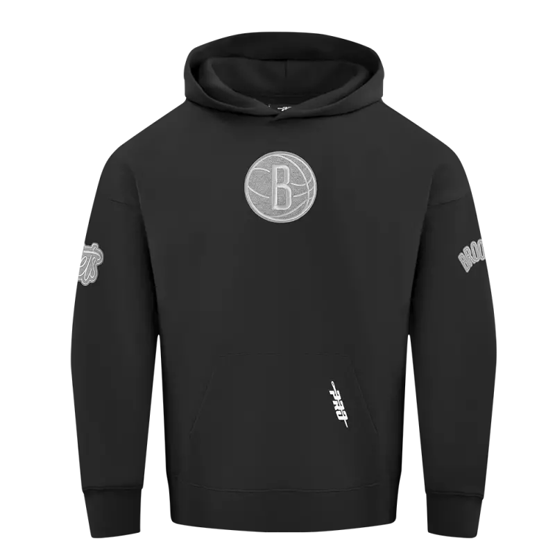 NBA BROOKLYN NETS REVERSE FRENCH TERRY MEN’S DROP SHOULDER FLC PO HO (BLACK)