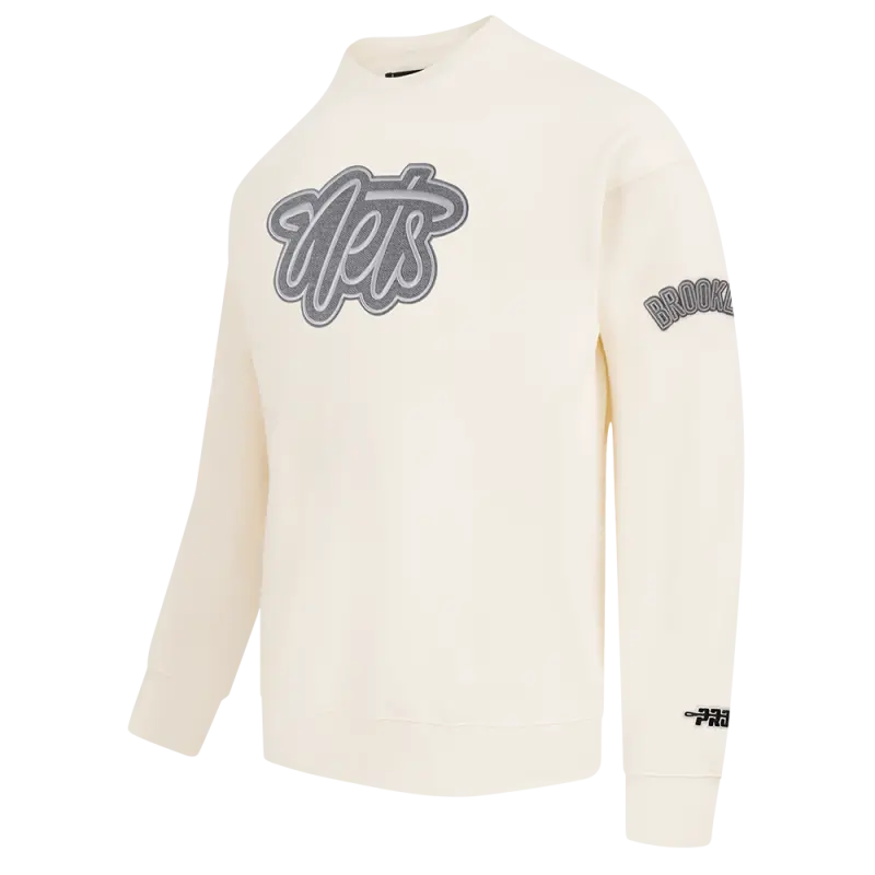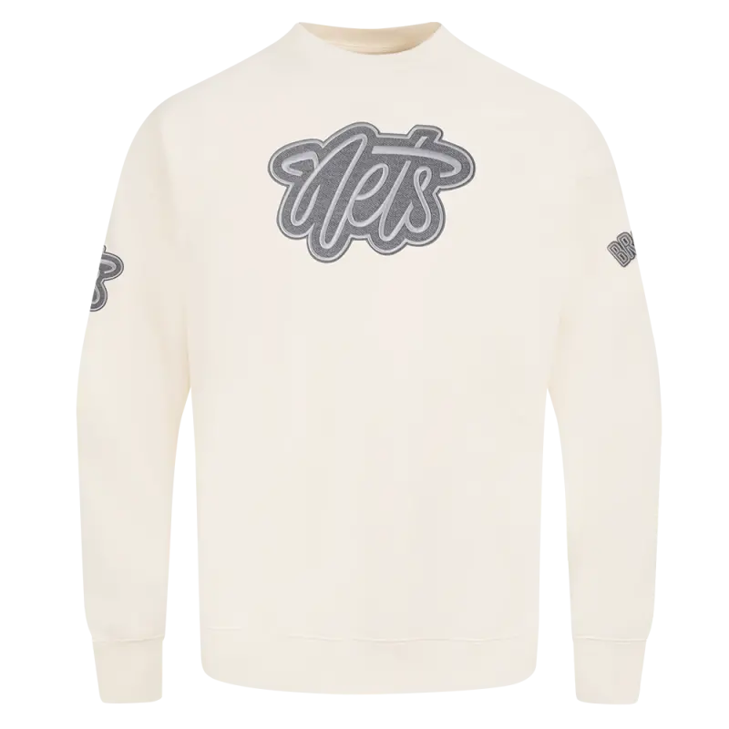 NBA BROOKLYN NETS REVERSE FRENCH TERRY MEN’S DROP SHOULDER FLEECE CREWNECK (EGGSHELL)