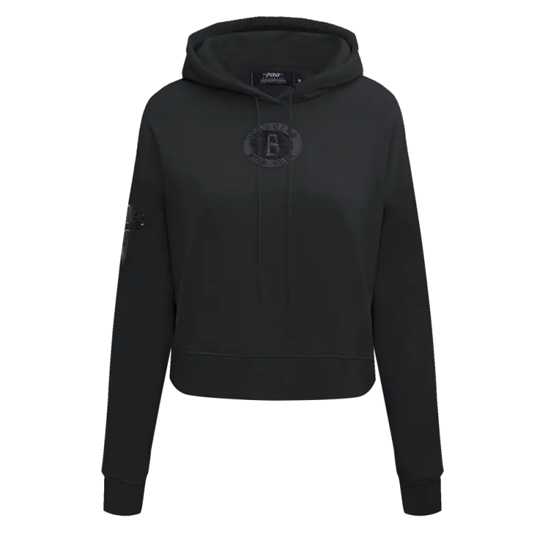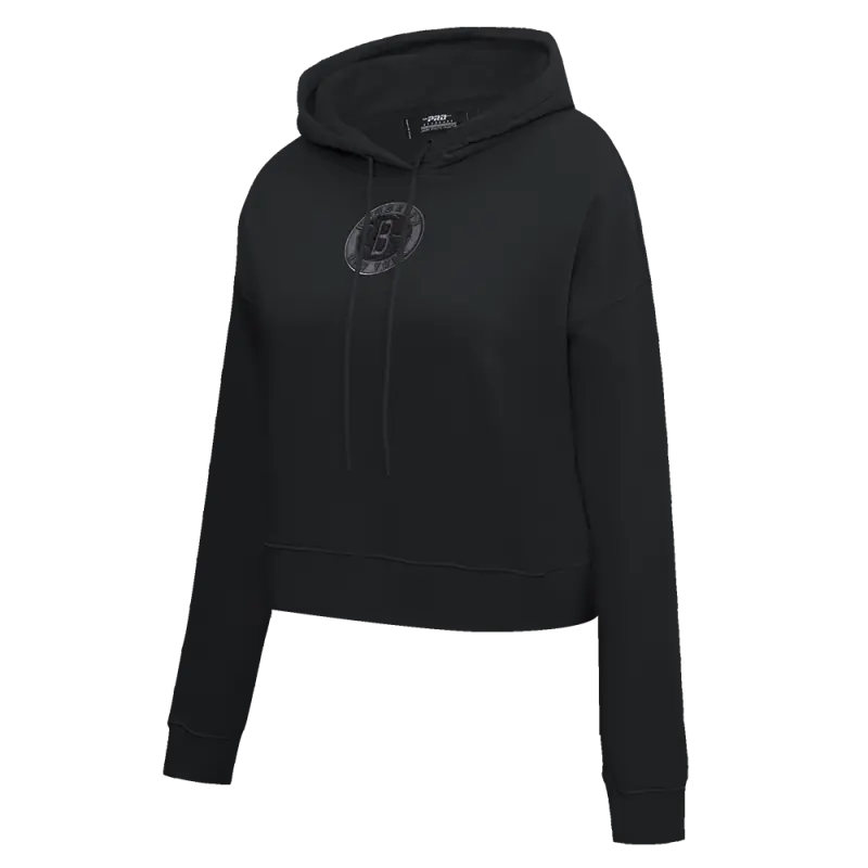 NBA BROOKLYN NETS TRIPLE BLACK WOMEN’S CROPPED PULLOVER HOODIE (TRIPLE BLACK)