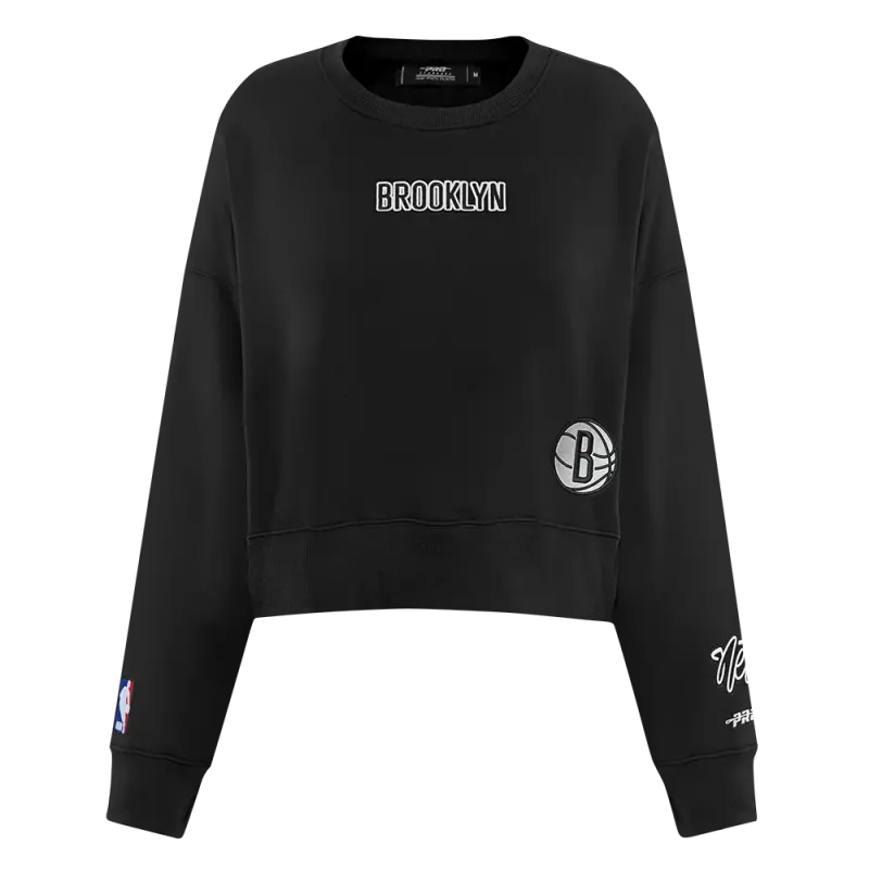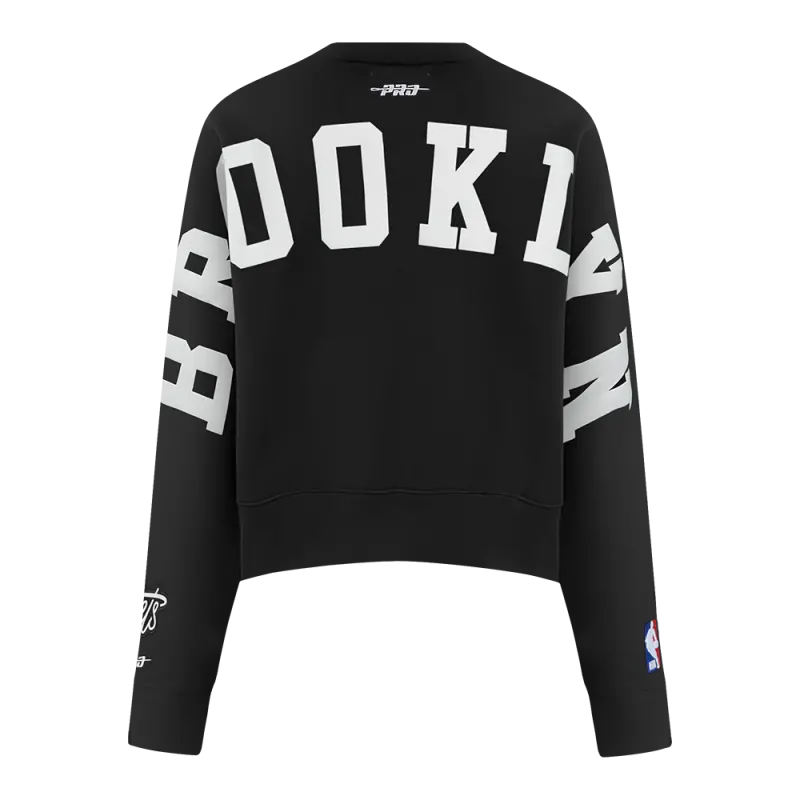 NBA BROOKLYN NETS WINGSPAN WOMEN’S FLEECE CREWNECK (BLACK)