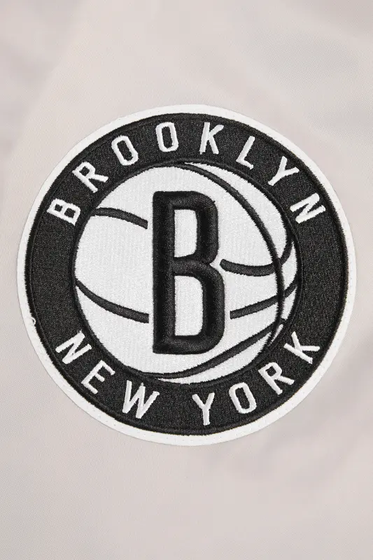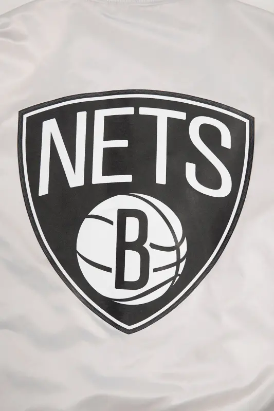 NBA BROOKLYN NETS BIG LOGO MEN’S SATIN JACKET (SILVER)