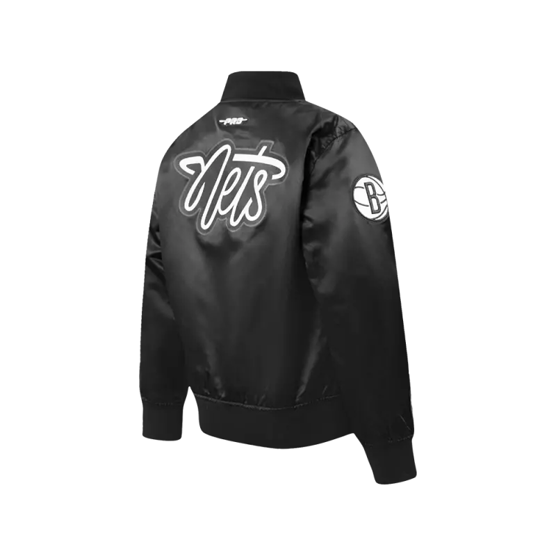 NBA BROOKLYN NETS CLASSIC BIG BOYS SATIN JACKET (BLACK)