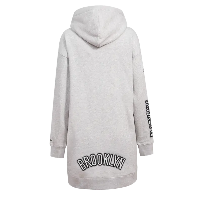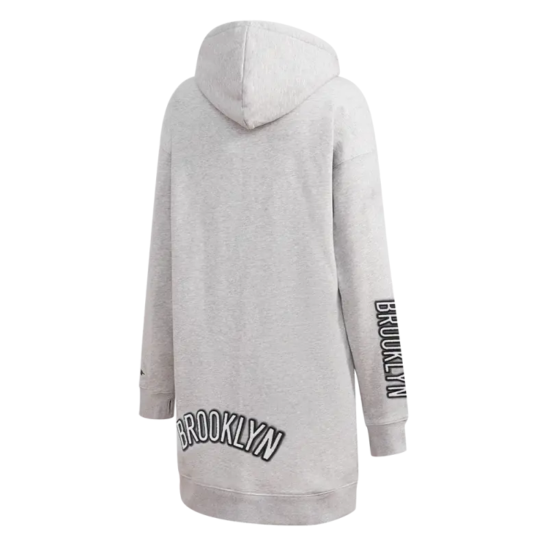 NBA BROOKLYN NETS CLASSIC WOMEN’S HOODIE DRESS (HEATHER GREY)