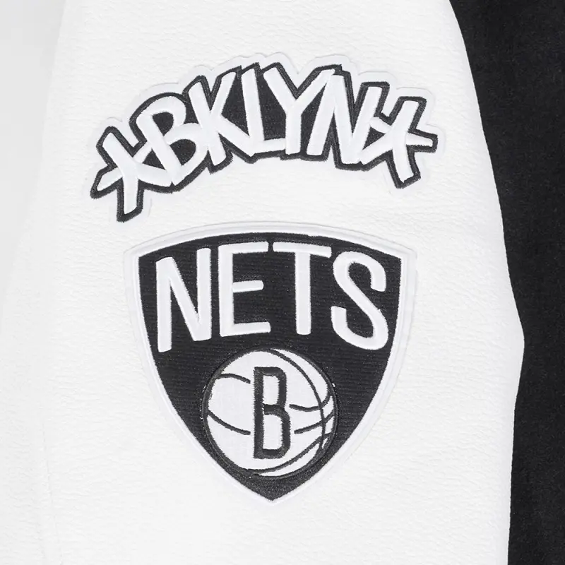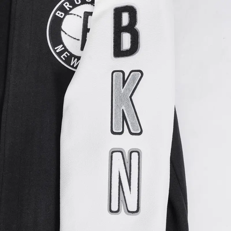 The Pro Standard Premium NBA Brooklyn Nets Classic Wool Men’s Varsity Jacket (Black/White)