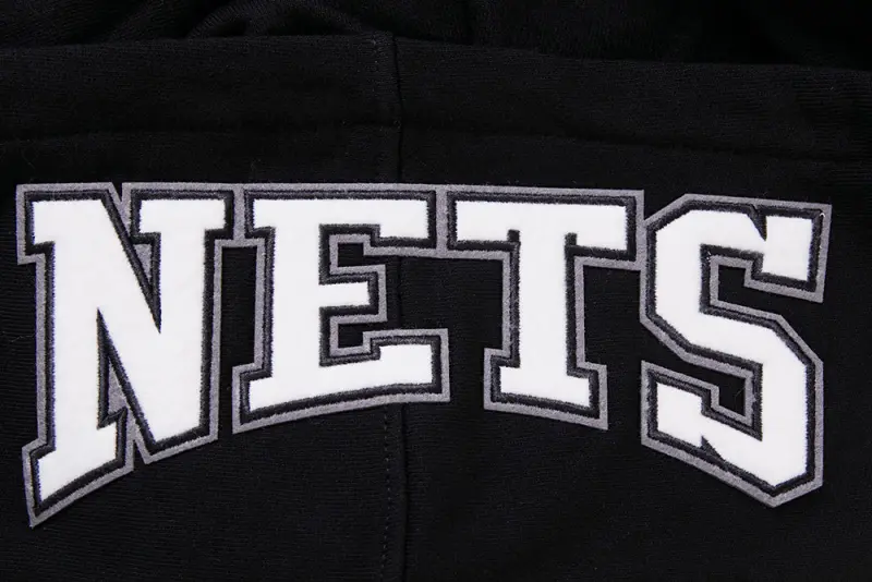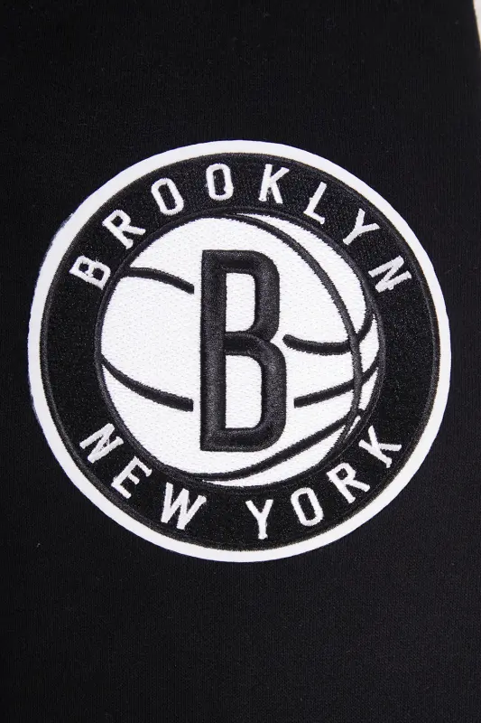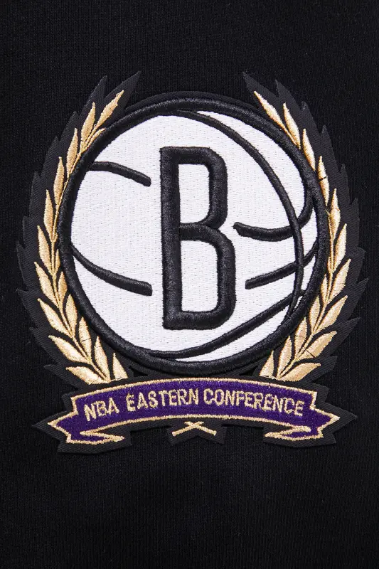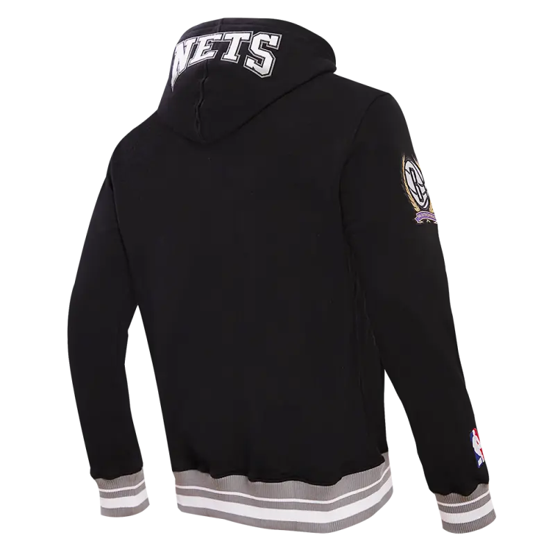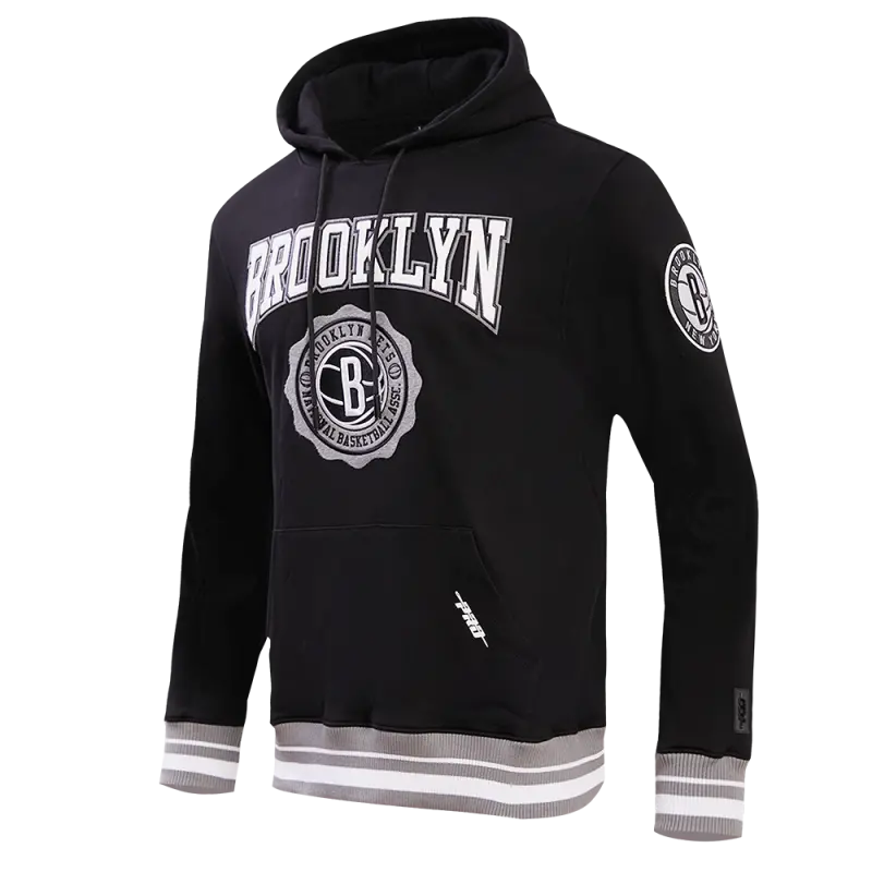 The Pro Standard Premium NBA Brooklyn Nets Crest Emblem Men’s Rib PO Hoodie (Black/Gray)