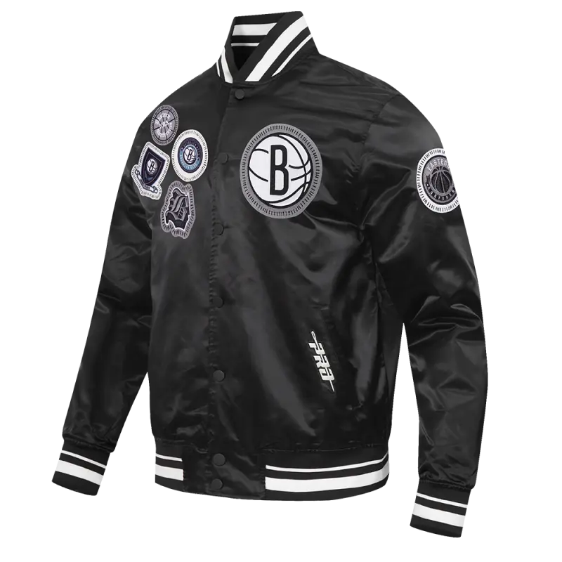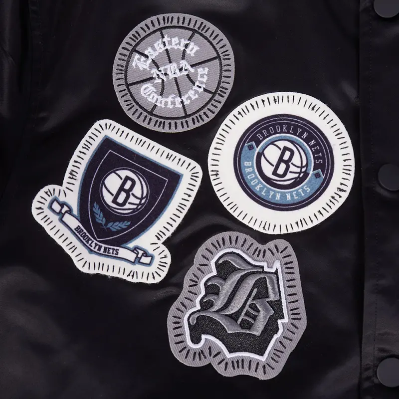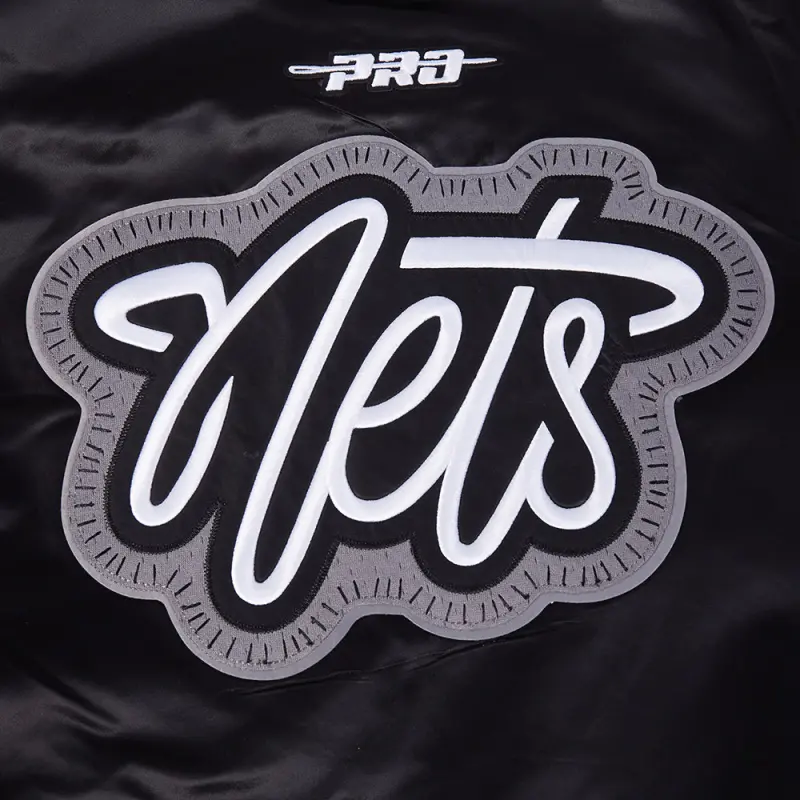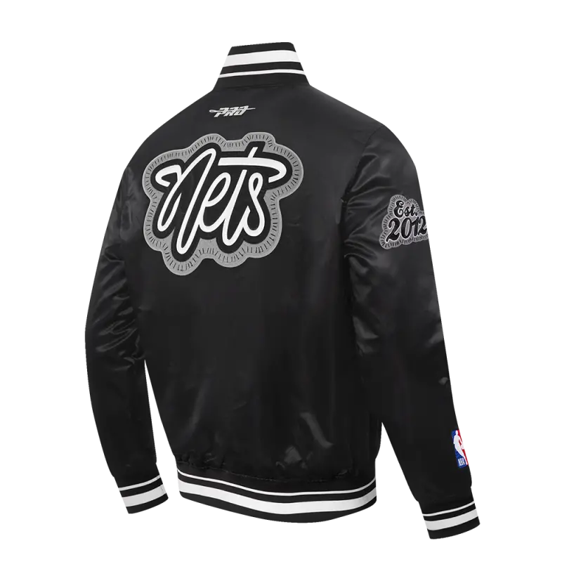NBA BROOKLYN NETS DIY PICK STITCH MEN’S RIB SATIN JACKET (BLACK)