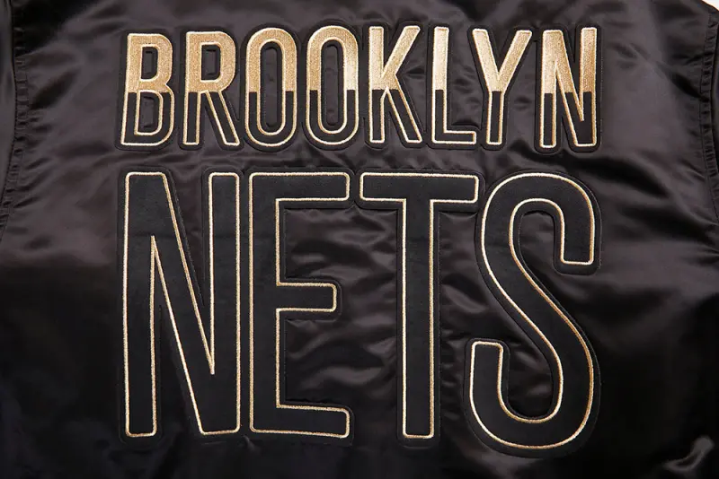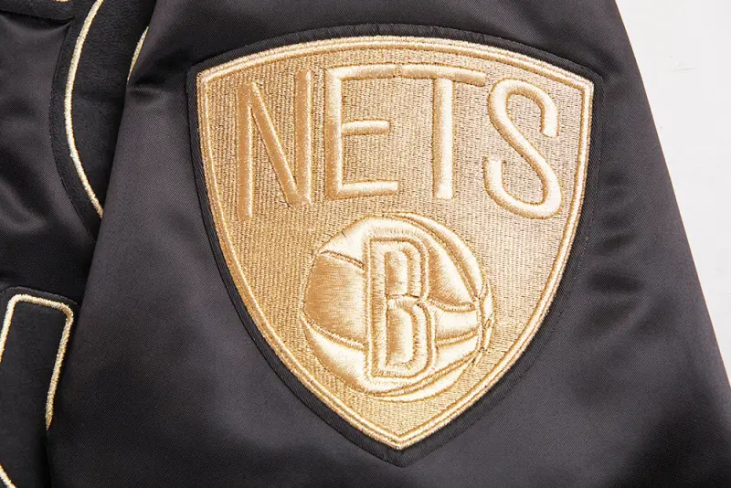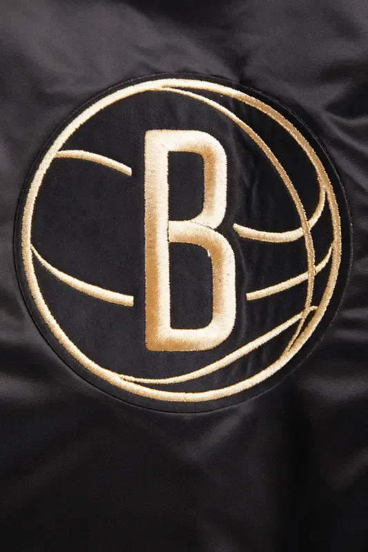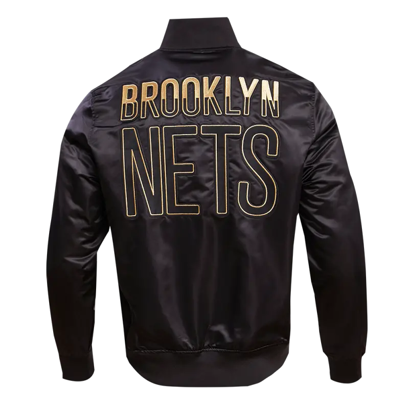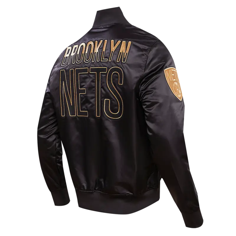 NBA BROOKLYN NETS GOLD LOGO SATIN JACKET (BLACK)