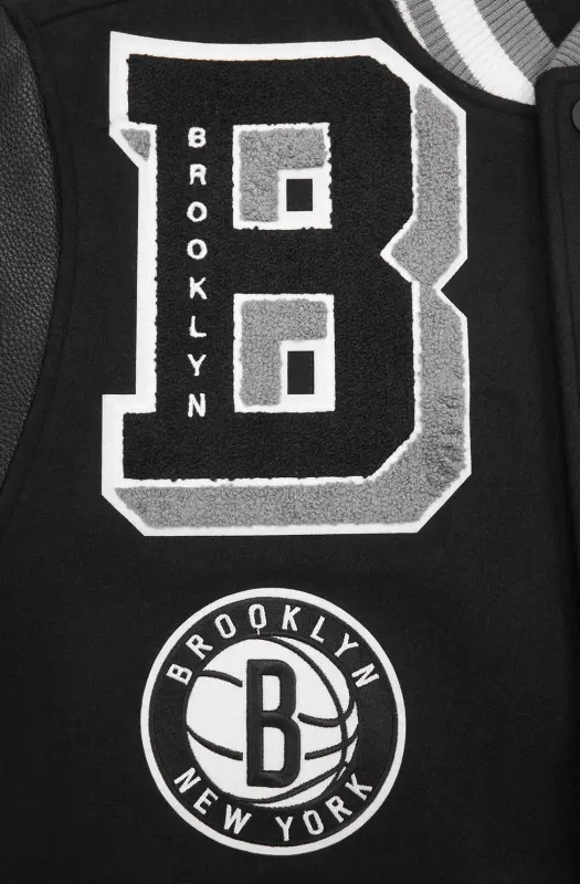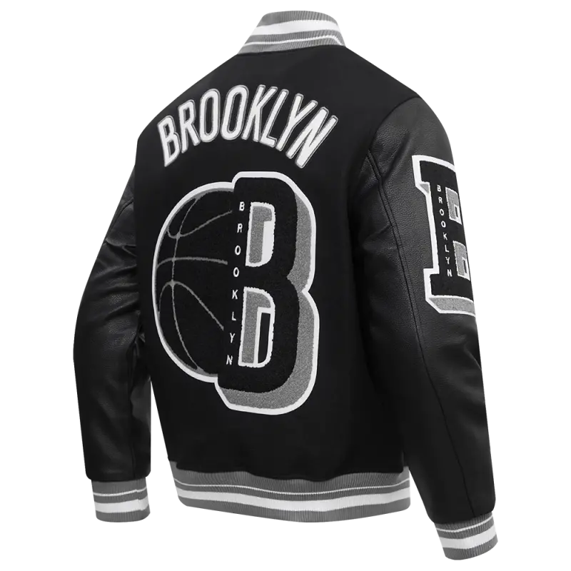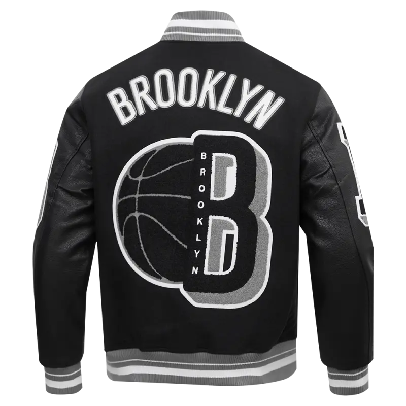 NBA BROOKLYN NETS MASHUP MEN’S RIB WOOL VARSITY JACKET (BLACK\/GRAY)