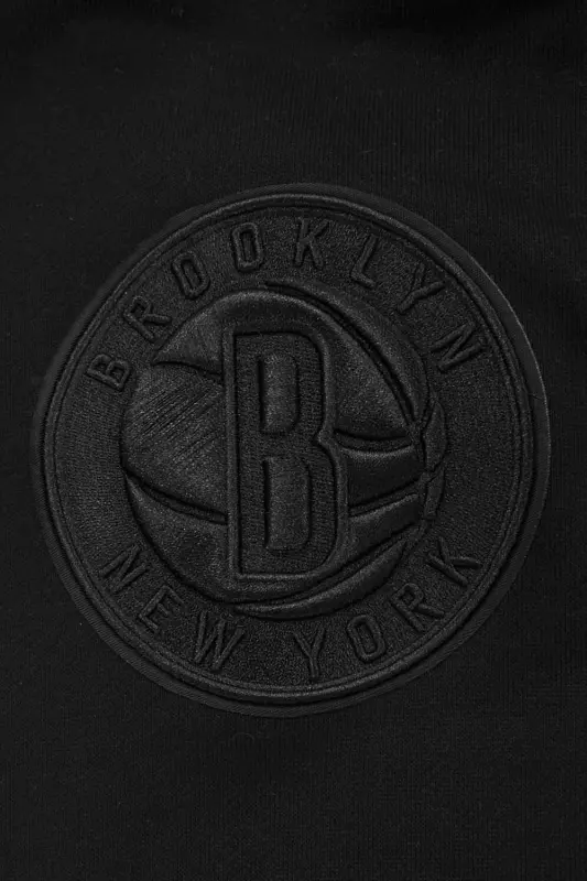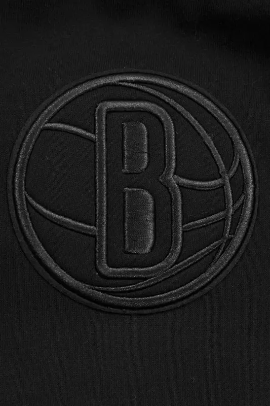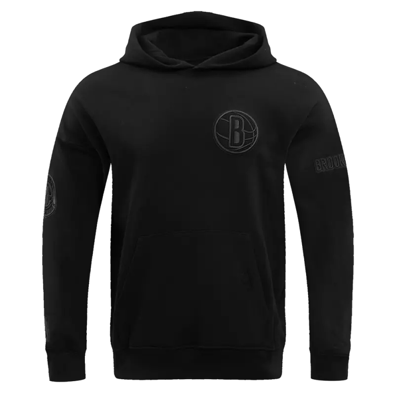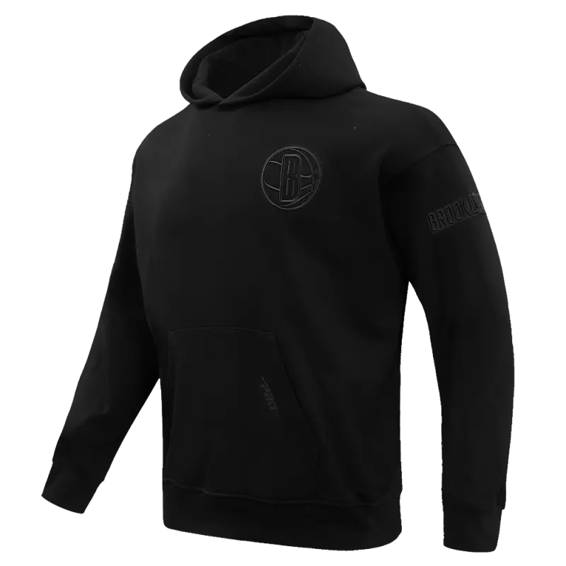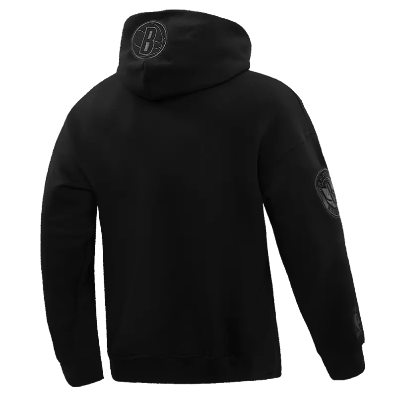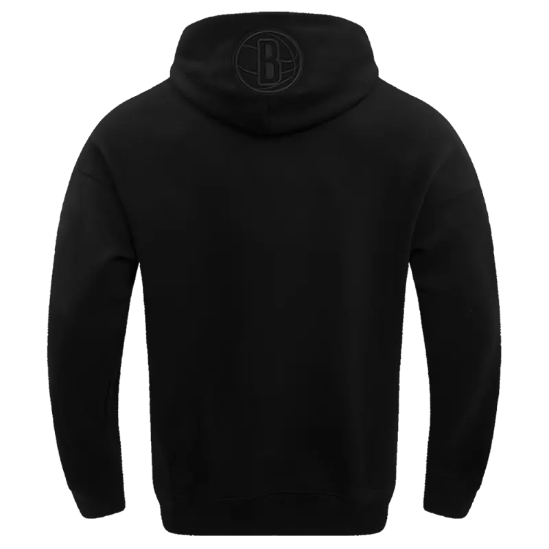 NBA BROOKLYN NETS NEUTRAL DROP SHOULDER MEN’S PULLOVER HOODIE (BLACK)