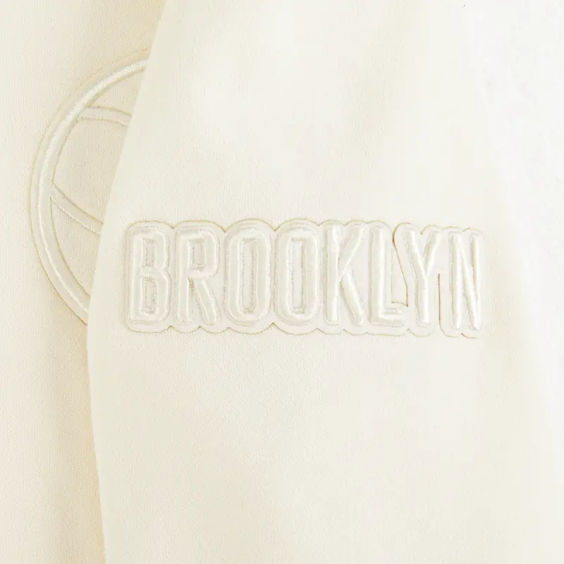 NBA BROOKLYN NETS NEUTRAL LITTLE BOYS FLEECE PULLOVER HOODIE (EGGSHELL)