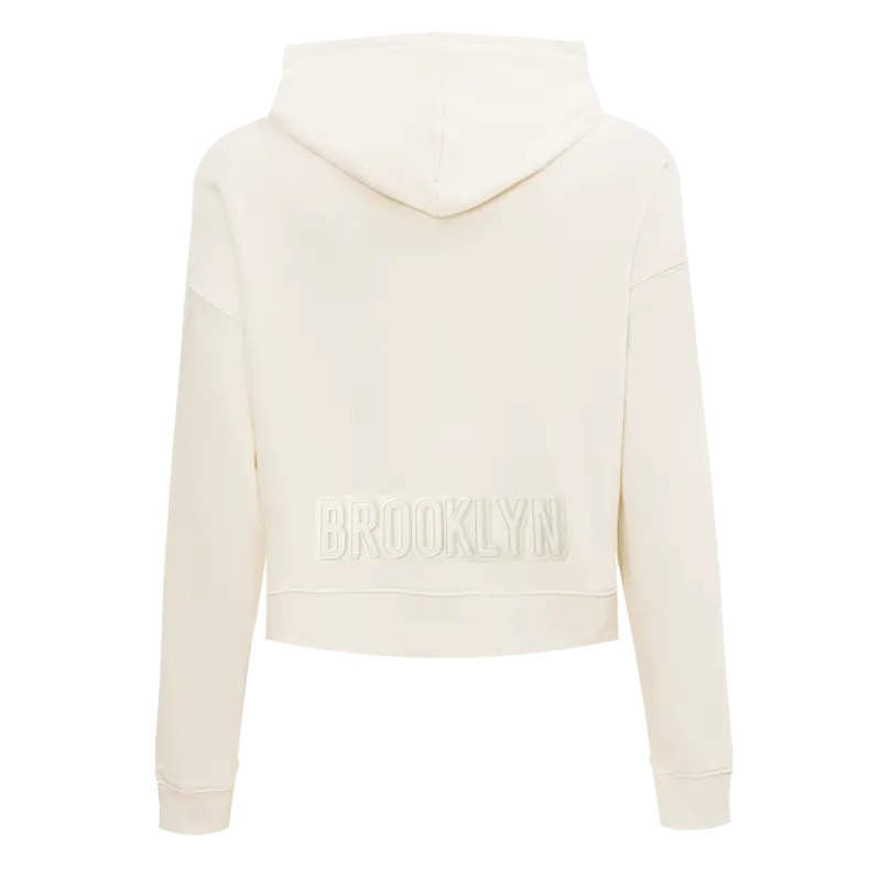 NBA BROOKLYN NETS NEUTRAL WOMEN’S FLC CROPPED PO HOODIE (EGGSHELL)