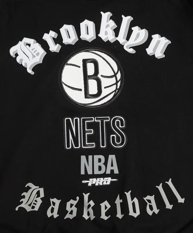 NBA BROOKLYN NETS OLD ENGLISH MEN’S CREWNECK (BLACK)