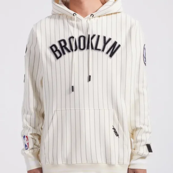 Home / Shop / SWEATSHIRTS / NBA BROOKLYN NETS PINSTRIPE RETRO CLASSIC RIB FLC PO HOODIE (EGGSHELL\/ GREY)
