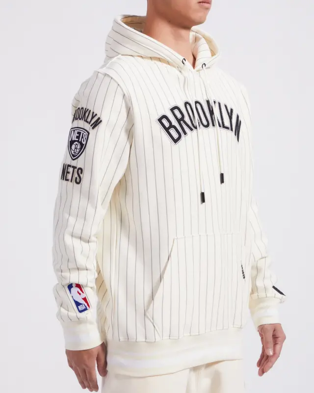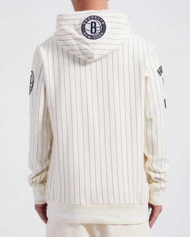 NBA BROOKLYN NETS PINSTRIPE RETRO CLASSIC RIB FLC PO HOODIE (EGGSHELL\/ GREY)