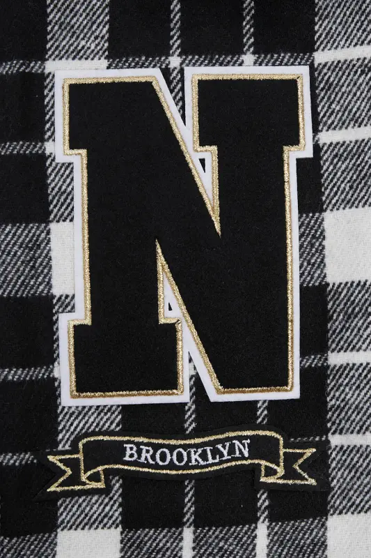 NBA BROOKLYN NETS PRO PREP PLAID WOMEN’S JACKET (WHITE\/BLACK)