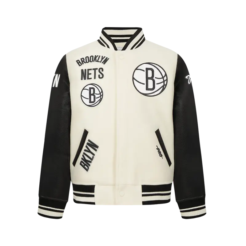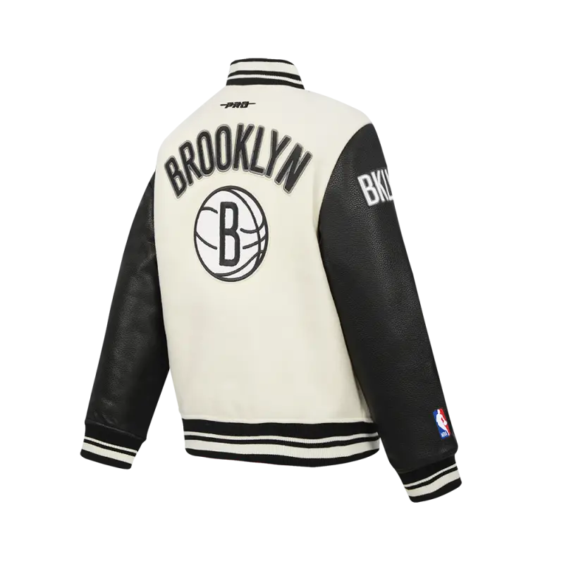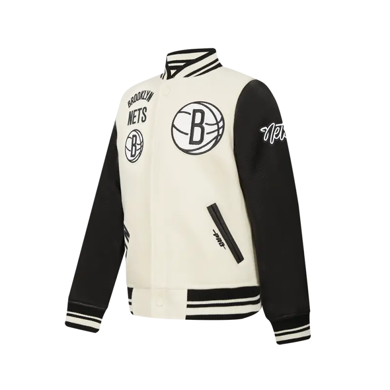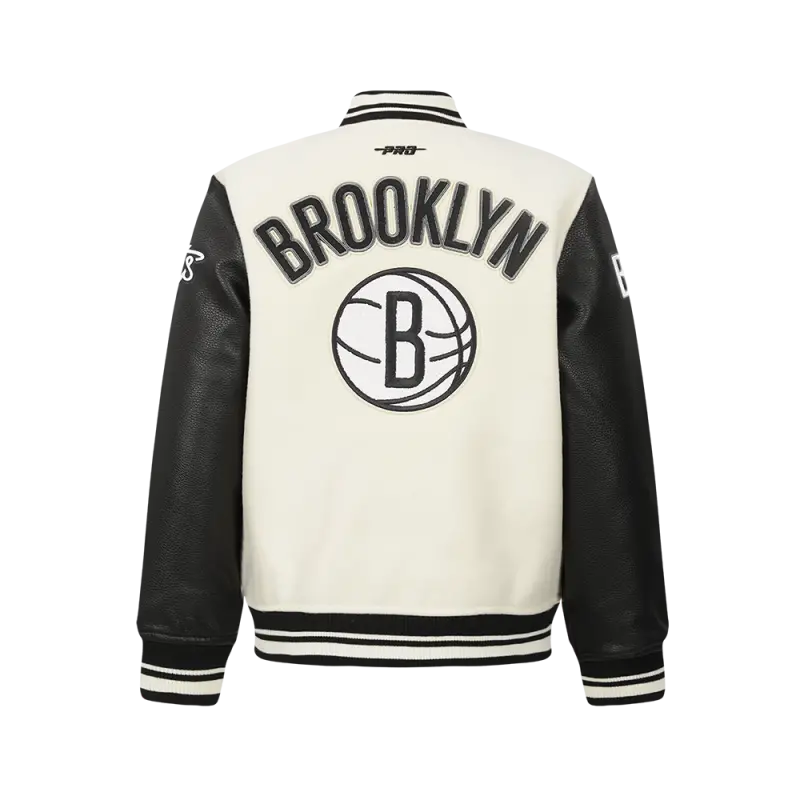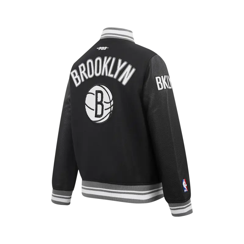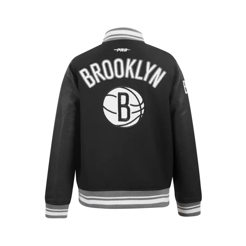 NBA BROOKLYN NETS RETRO CLASSIC BIG BOYS RIB WOOL VARSITY JACKET (BLACK\/GRAY)