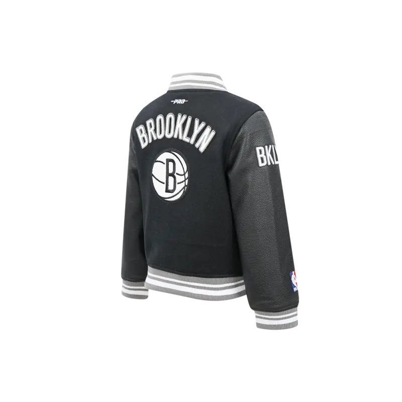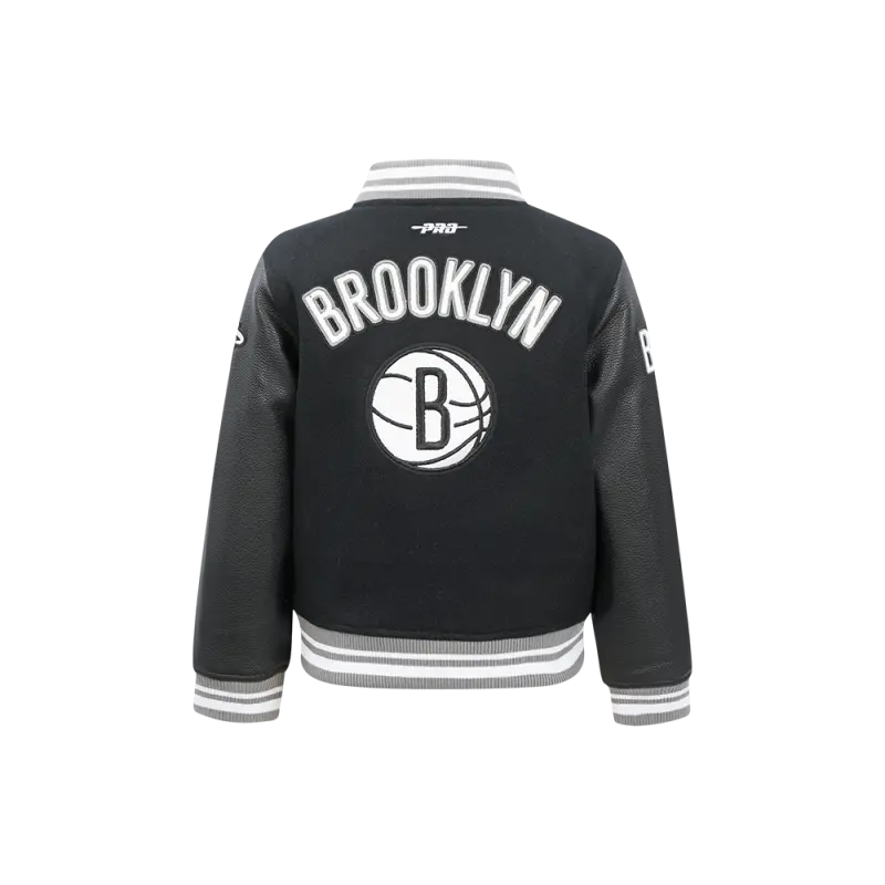 NBA BROOKLYN NETS RETRO CLASSIC LITTLE BOYS RIB WOOL VARSITY JACKET (BLACK\/GRAY)