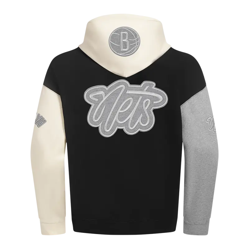NBA BROOKLYN NETS REVERSE FRENCH TERRY MEN’S COLORBLOCK FLEECE PULLOVER HOODIE