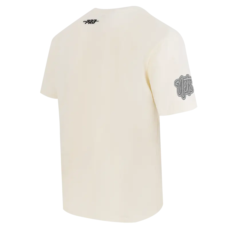 NBA BROOKLYN NETS REVERSE FRENCH TERRY MEN’S COTTON JERSEY DROP SHOULDER TEE (EGGSHELL)