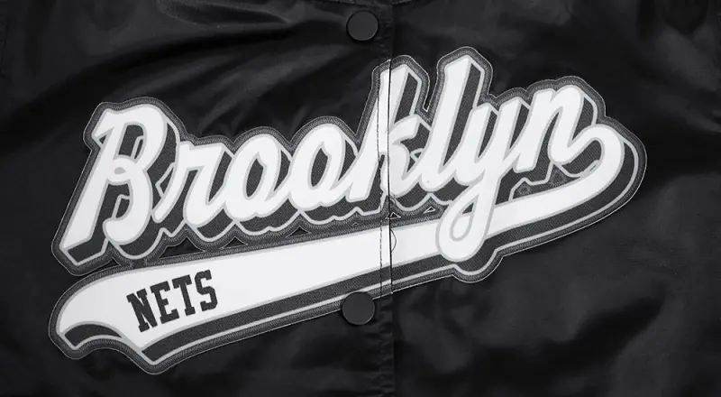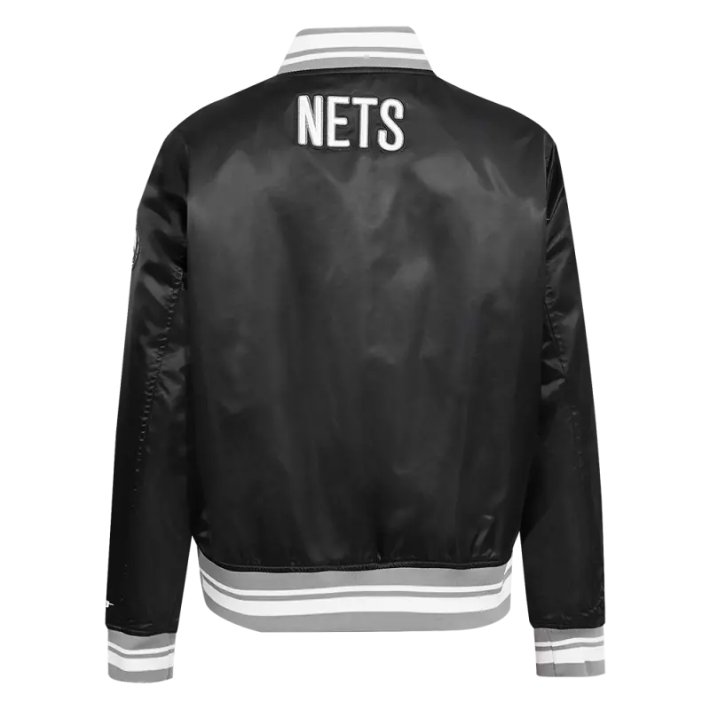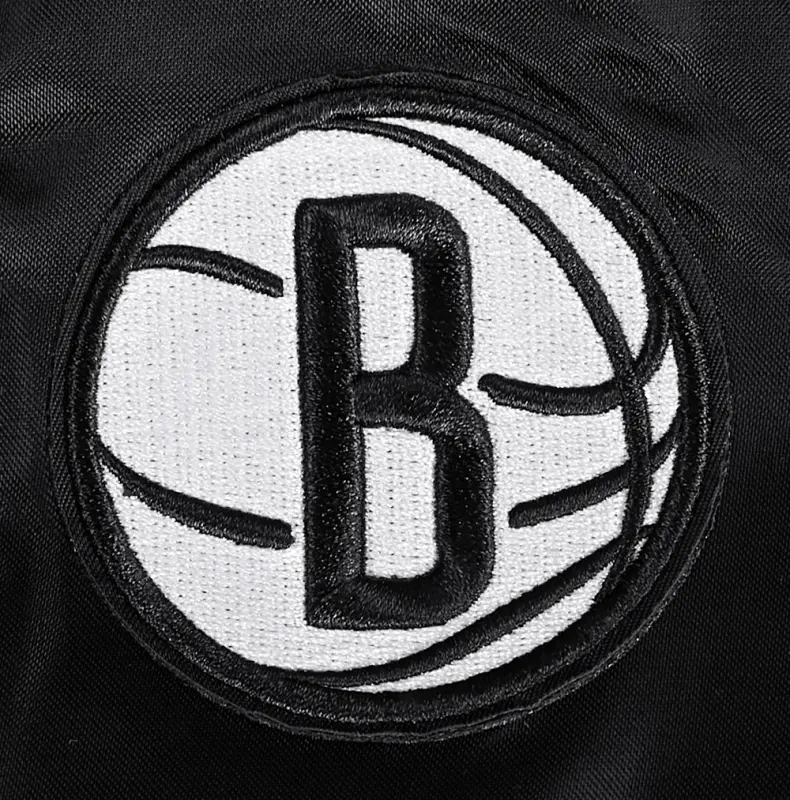 NBA BROOKLYN NETS SCRIPT TAIL WOMEN’S SATIN JACKET (BLACK\/GRAY)