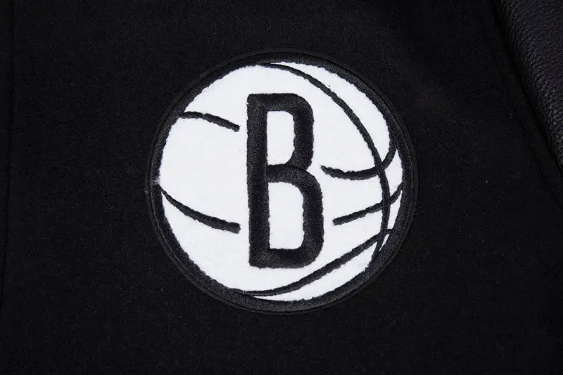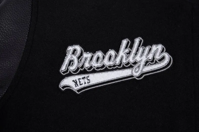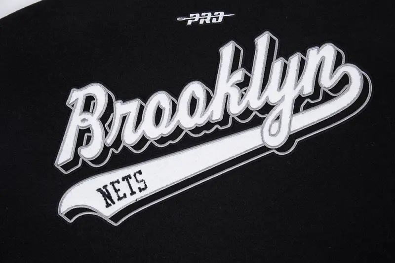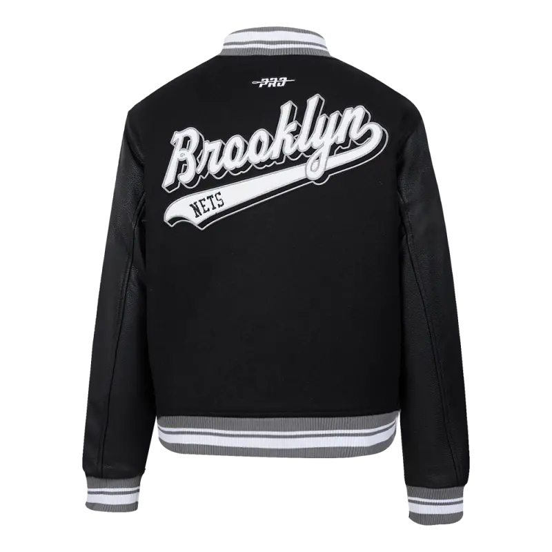 NBA BROOKLYN NETS SCRIPT TAIL WOMEN’S WOOL VARSITY JACKET (BLACK\/GRAY)