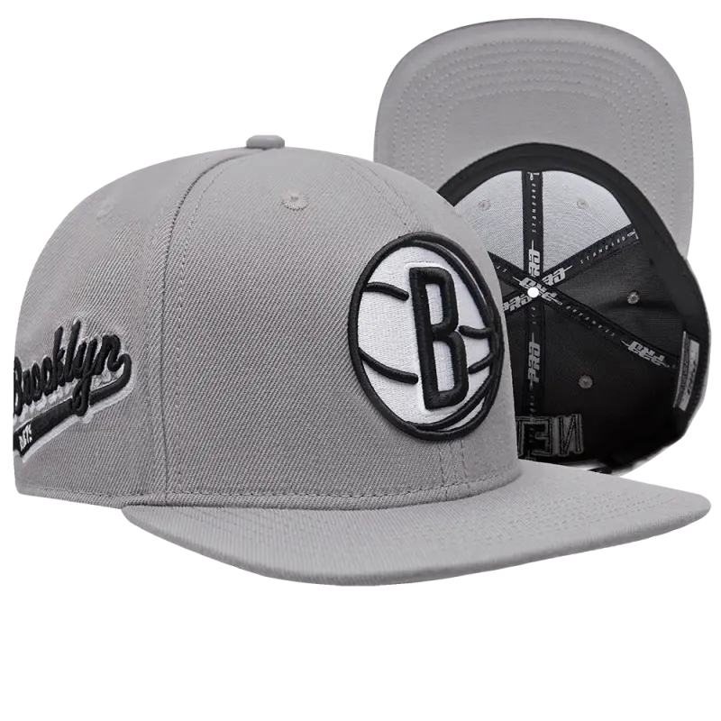 NBA BROOKLYN NETS SCRIPT TAIL WOOL SNAPBACK (GRAY)