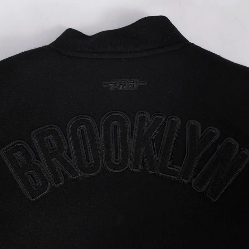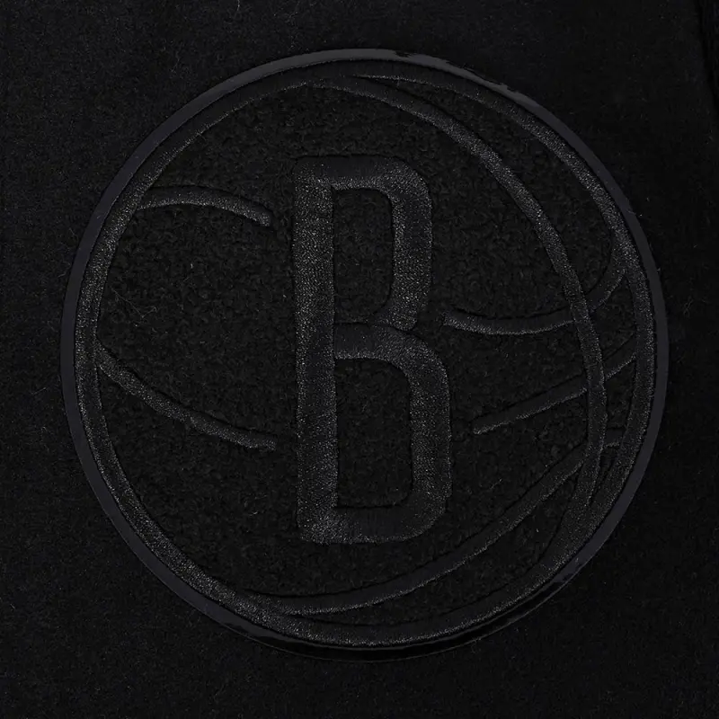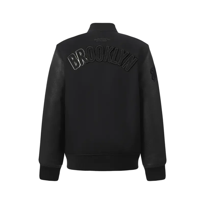 NBA BROOKLYN NETS TRIPLE BLACK BIG BOYS WOOL VARSITY JACKET (JET BLACK)