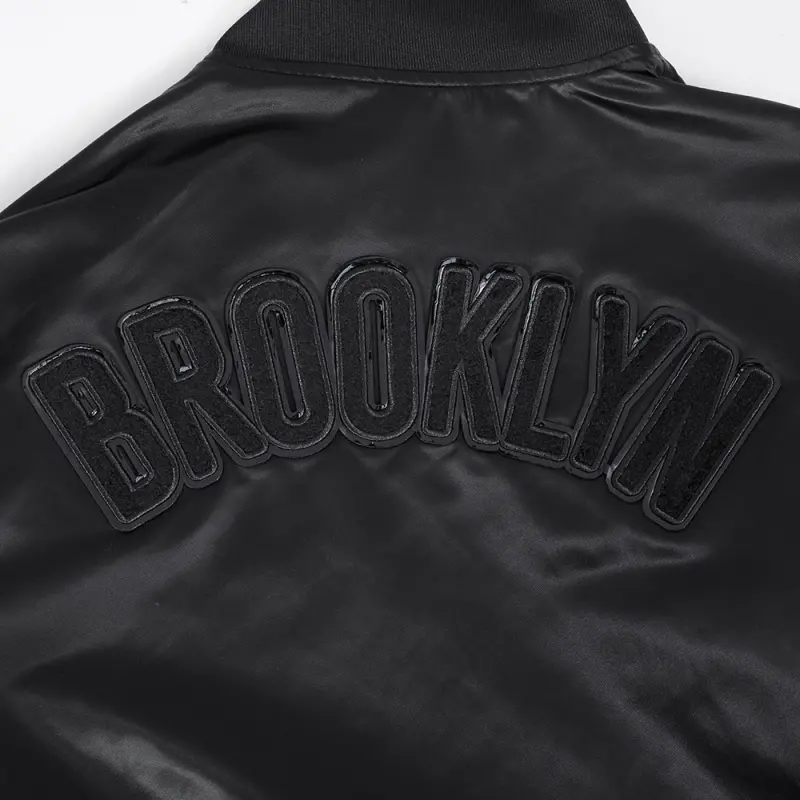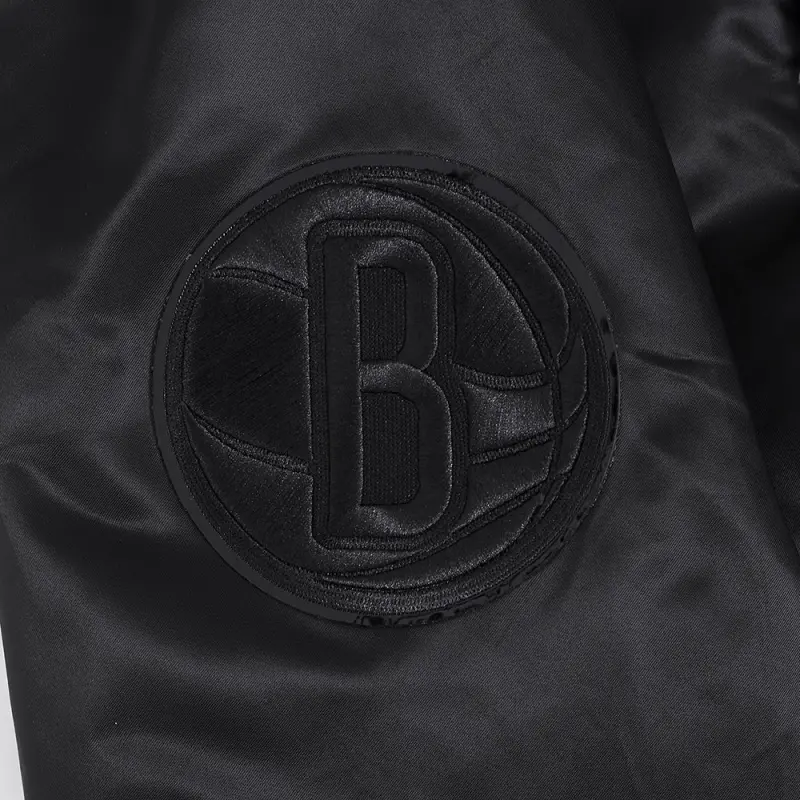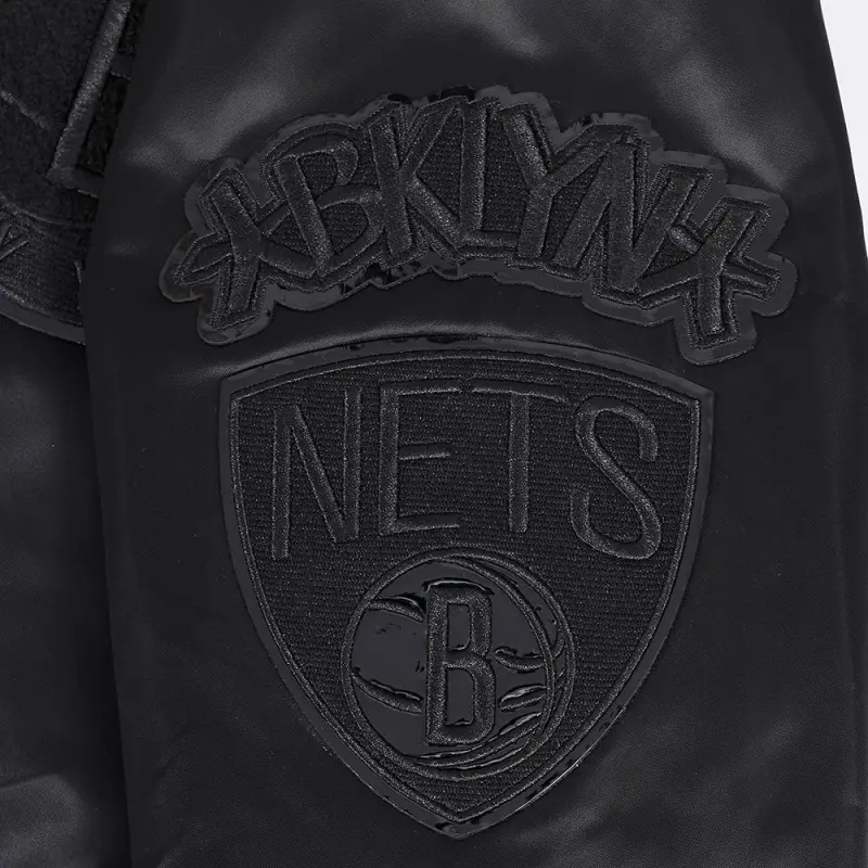 NBA BROOKLYN NETS TRIPLE BLACK MEN’S SATIN JACKET (BLACK)