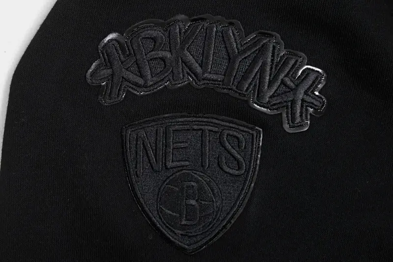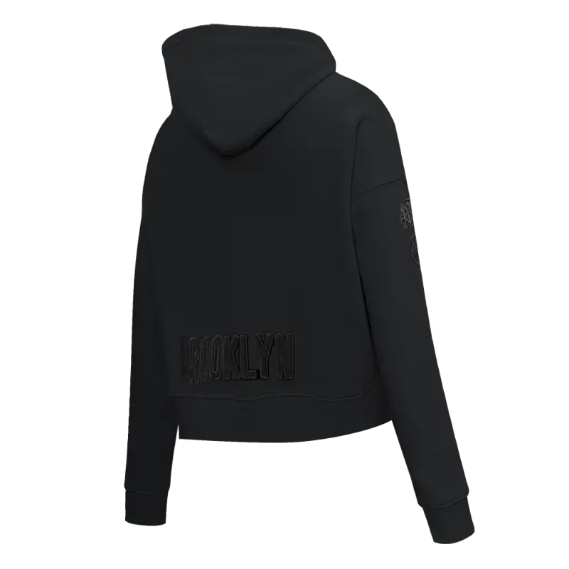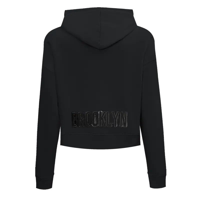 NBA BROOKLYN NETS TRIPLE BLACK WOMEN’S CROPPED PULLOVER HOODIE (TRIPLE BLACK)