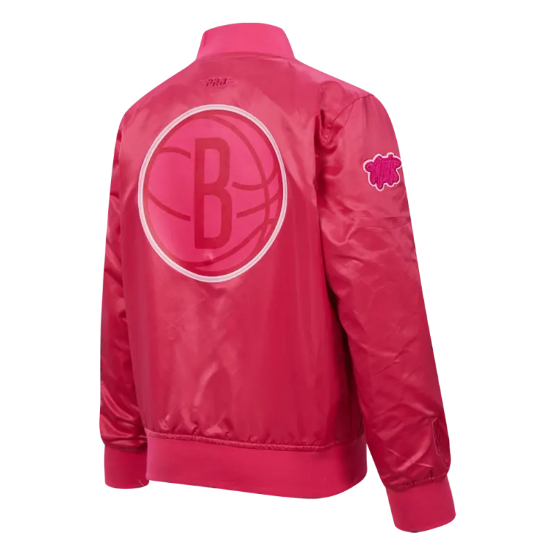 NBA BROOKLYN NETS TRIPLE PINK BIG GIRLS SATIN JACKET (BEETROOT PURPLE)