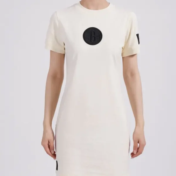 NBA BROOKLYN NETS TRIPLE TONAL BODYCON DRESS (EGGSHELL)