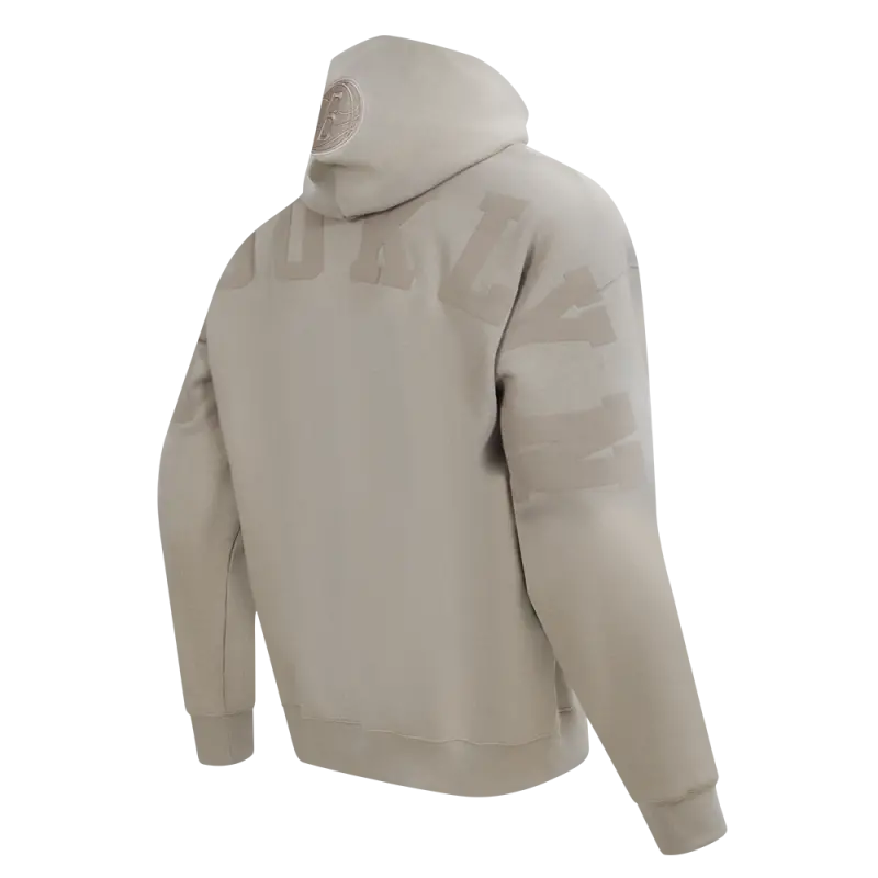 NBA BROOKLYN NETS WINGSPAN MEN’S DROP SHOULDER FLEECE PULLOVER HOODIE (TAUPE)